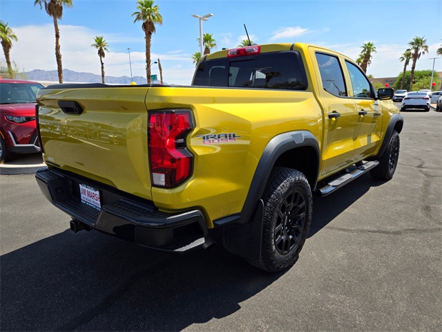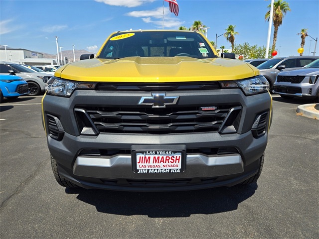 Odometer is 6359 miles below market average!Nitro Yellow Metallic 2023 Chevrolet Colorado Trail Boss 4WD 8-Speed Automatic 2.7L Turbo 4WD.If you don't drive here, you can't save here!Price may not include recon fee. Advanced Trailering Package (Trailering App), Heavy-Duty Trailering Package (Integrated Trailer Brake Controller), Interior Illumination Package (LPO), Preferred Equipment Group 0TR (Automatic Emergency Braking, Chevy Safety Assist, Following Distance Indicator, Forward Collision Alert, Front Pedestrian & Bicyclist Braking, IntelliBeam Automatic High Beam On/Off, and Lane Keep Assist w/Lane Departure Warning), Skid Plate Package (LPO), Trail Boss Convenience Package (Electronic Automatic Cruise Control, Manual Rear-Sliding Window, and Rear-Window Electric Defogger), Trail Boss Convenience Package II (8-Way Power Driver Seat Adjuster, EZ-Lift & Lower Tailgate, Power Driver Lumbar Control Seat Adjuster, StowFlex Tailgate Storage Compartment, and Tailgate Keyed Cylinder Lock), 4WD, 220 Amp Generator, 3.42 Rear Axle Ratio, 4-Way Manual Passenger Seat Adjuster, 4-Wheel Disc Brakes, 6 Speakers, 6-Speaker Audio System Feature, 6-Way Manual Driver Seat Adjuster, ABS brakes, Air Conditioning, Alloy wheels, AM/FM radio: SiriusXM, Apple CarPlay/Android Auto, Auto High-beam Headlights, Black Nameplates (LPO), Brake assist, Cloth Seat Trim, Compass, Delay-off headlights, Driver door bin, Driver vanity mirror, Dual front impact airbags, Dual front side impact airbags, Electronic Stability Control, Flexible Off-Road Splash Guards (LPO), Front anti-roll bar, Front Bucket Seats, Front Center Armrest, Front License Plate Kit, Front wheel independent suspension, Illuminated entry, Low tire pressure warning, Navigation System, Occupant sensing airbag, Off-Road Drive Shaft (LPO), Off-Road Recovery Kit (LPO), Outside temperature display, Overhead airbag, Overhead console, Panic alarm, Passenger door bin, Passenger vanity mirror, Power door mirrors, Power steering, Power windows, Radio data system, Radio: 11.3" Diagonal Advanced Color LCD Display, Rear reading lights, Rear step bumper, Remote keyless entry, Security system, SiriusXM Radio, Speed-sensing steering, Split folding rear seat, Steering Wheel Mounted Audio Controls, Steering wheel mounted audio controls, Tachometer, Tilt steering wheel, Traction control, Trip computer, Variably intermittent wipers, Wheels: 18" x 8.5" Black High Gloss Aluminum, and Wireless Phone Projection.