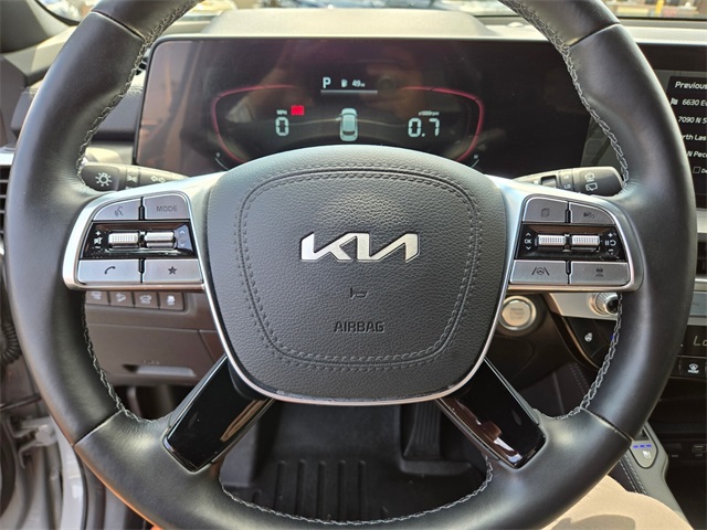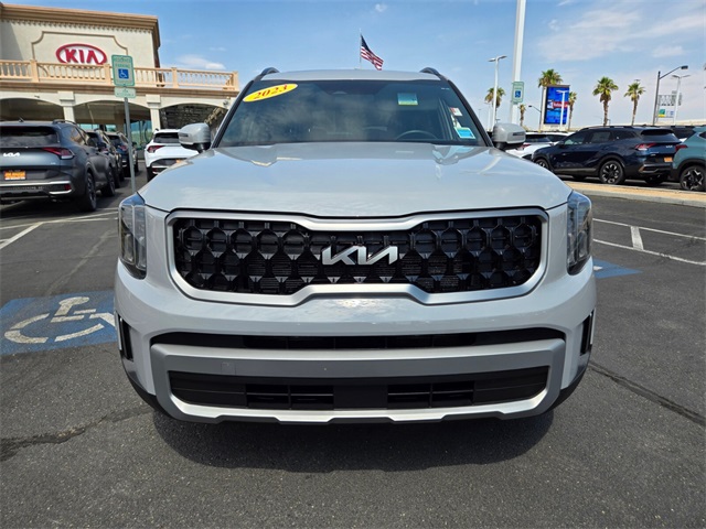 Priced below KBB Fair Purchase Price!Odometer is 4367 miles below market average!Wolf Gray 2023 Kia Telluride EX X-Line AWD 8-Speed Automatic 3.8L V6 DOHCIf you don't drive here, you can't save here!Price may not include recon fee. 3.648 Axle Ratio, 3rd row seats: split-bench, 4-Wheel Disc Brakes, 6 Speakers, ABS brakes, Air Conditioning, Alloy wheels, AM/FM radio: SiriusXM, Apple CarPlay & Android Auto, Auto High-beam Headlights, Auto-dimming Rear-View mirror, Automatic temperature control, Brake assist, Bumpers: body-color, Cargo Tray Seat Back, Carpet Floor Mats, Compass, Cross Bars X-Line, Delay-off headlights, Driver door bin, Driver vanity mirror, Dual front impact airbags, Dual front side impact airbags, Electronic Stability Control, Emergency communication system: 911 Connect, Exterior Parking Camera Rear, Four wheel independent suspension, Front anti-roll bar, Front Bucket Seats, Front Center Armrest, Front dual zone A/C, Front reading lights, Fully automatic headlights, Heated & Ventilated Front Bucket Seats, Heated door mirrors, Heated front seats, Heated steering wheel, Hybrid Cargo Net, Illuminated entry, Knee airbag, Leather Seat Trim, Leather Shift Knob, Leather steering wheel, Low tire pressure warning, Navigation System, Occupant sensing airbag, Outside temperature display, Overhead airbag, Overhead console, Panic alarm, Passenger door bin, Passenger vanity mirror, Power door mirrors, Power driver seat, Power Liftgate, Power moonroof, Power passenger seat, Power steering, Power windows, Radio data system, Radio: AM/FM Display Audio System, Rear air conditioning, Rear anti-roll bar, Rear audio controls, Rear reading lights, Rear side impact airbag, Rear window defroster, Rear window wiper, Reclining 3rd row seat, Remote keyless entry, Roof rack: rails only, Security system, Smart Key w/ Push Button and Remote Start, Speed control, Speed-sensing steering, Split folding rear seat, Spoiler, Steering wheel mounted audio controls, Tachometer, Telescoping steering wheel, Tilt steering wheel, Traction control, Trip computer, Turn signal indicator mirrors, Variably intermittent wipers, and Ventilated front seats.