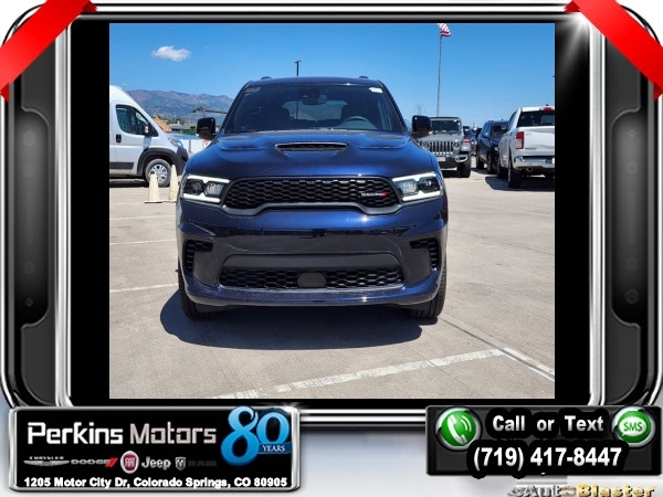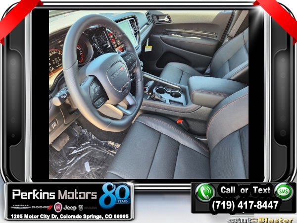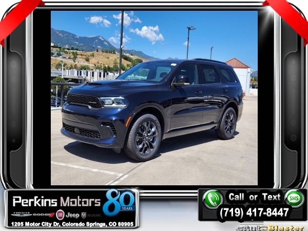 Factory MSRP: $52,900 $7,086 off MSRP! Priced below KBB Fair Purchase Price! Night Moves 2024 Dodge Durango GT AWD 8-Speed Automatic 3.6L V6 24V VVT<br>AWD, ABS brakes, Alloy wheels, Compass, Electronic Stability Control, Front dual zone A/C, Heated door mirrors, Heated front seats, Illuminated entry, Low tire pressure warning, ParkView Rear Back-Up Camera, Power Liftgate, Remote keyless entry, Traction control.<br>Check us out at www.perkinsmotors.com to see our specials! Since opening our doors in 1944, we’ve been proud to serve Colorado Springs, CO, and the surrounding areas of Pueblo, Castle Rock and Denver, CO. Throughout this time of being family owned for 80 years, we’ve maintained a firm commitment to our customers: to offer a wide selection of New Chrysler, Dodge, Fiat, Jeep, and Ram vehicles and quality pre-owned vehicles, and provide a quick, no-hassle car-buying process that ensures everyone drives off the lot satisfied with their purchase.<br><br>AWD, ABS brakes, Alloy wheels, Compass, Electronic Stability Control, Front dual zone A/C, Heated door mirrors, Heated front seats, Illuminated entry, Low tire pressure warning, ParkView Rear Back-Up Camera, Power Liftgate, Remote keyless entry, Traction control, 3.45 Rear Axle Ratio, 3rd row seats: split-bench, 4-Wheel Disc Brakes, 6 Speakers, Air Conditioning, AM/FM radio: SiriusXM, Anti-whiplash front head restraints, Apple CarPlay, Apple CarPlay/Android Auto, Auto-dimming Rear-View mirror, Automatic temperature control, Brake assist, Bumpers: body-color, Cloth Bucket Seats w/Shift Insert, Cruise Control, Delay-off headlights, Driver door bin, Driver vanity mirror, Dual front impact airbags, Dual front side impact airbags, Exterior Mirrors w/Heating Element, Four wheel independent suspension, Front anti-roll bar, Front Bucket Seats, Front Center Armrest w/Storage, Front reading lights, Fully automatic headlights, Garage door transmitter, Gloss Black Exterior Mirrors, Google Android Auto, GPS Antenna Input, Heated steering wheel, Integrated Center Stack Radio, Integrated Voice Command w/Bluetooth, Knee airbag, Leather steering wheel, Occupant sensing airbag, Outside temperature display, Overhead airbag, Overhead console, Panic alarm, Passenger door bin, Passenger vanity mirror, Power door mirrors, Power driver seat, Power steering, Power windows, Radio data system, Radio: Uconnect 4 w/8.4 Display, Rear air conditioning, Rear anti-roll bar, Rear reading lights, Rear seat center armrest, Rear window defroster, Rear window wiper, Red Accent Stitching, Speed-sensing steering, Speed-Sensitive Wipers, Split folding rear seat, Spoiler, Sport steering wheel, Steering wheel mounted audio controls, Tachometer, Telescoping steering wheel, Tilt steering wheel, Trip computer, USB Host Flip, Variably intermittent wipers, Voltmeter, and Wheels: 20 x 8.0 Fine Silver. Sale price includes all manufacture's incentives and dealer discounts. Sale price not available on lease or compatible with special APR. $1000 - 2024 National Engine Bonus Cash. Exp. 10/31/2024 $2950 - 2024 National Power Dollars Retail Bonus Cash . Exp. 10/31/2024