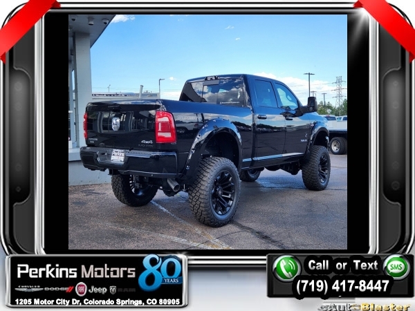 Factory MSRP: $77,005 Diamond Black Crystal Pearlcoat 2024 Ram 2500 Big Horn BLACK WIDOW 4WD 6-Speed Automatic Cummins 6.7L I6 Turbodiesel<br>BLACK WIDOW LIFT PACKAGE, ABS brakes, Compass, Electronic Stability Control, Heated door mirrors, Illuminated entry, Low tire pressure warning, ParkView Rear Back-Up Camera, Remote keyless entry, Traction control.<br>Check us out at www.perkinsmotors.com to see our specials! Since opening our doors in 1944, we’ve been proud to serve Colorado Springs, CO, and the surrounding areas of Pueblo, Castle Rock and Denver, CO. Throughout this time of being family owned for 80 years, we’ve maintained a firm commitment to our customers: to offer a wide selection of New Chrysler, Dodge, Fiat, Jeep, and Ram vehicles and quality pre-owned vehicles, and provide a quick, no-hassle car-buying process that ensures everyone drives off the lot satisfied with their purchase.<br><br>ABS brakes, Compass, Electronic Stability Control, Heated door mirrors, Illuminated entry, Low tire pressure warning, ParkView Rear Back-Up Camera, Remote keyless entry, Traction control, 2 Way Rear Headrest Seat, 3.73 Axle Ratio, 4 Way Front Headrests, 4-Wheel Disc Brakes, 40/20/40 Split Bench Seat, 6 Speakers, Active Noise Control System, Air Conditioning, Black Exterior Mirrors, Bluetooth Handsfree Phone & Audio, Brake assist, Bumpers: chrome, Center Hub, Center Stack Storage Drawer, Cloth 40/20/40 Bench Seat, Connectivity - US/Canada, Cruise Control, Delay-off headlights, Driver door bin, Dual front impact airbags, Dual front side impact airbags, Electronically Controlled Throttle, Emergency communication system: SiriusXM Guardian, Exterior Mirrors w/Heating Element, Front anti-roll bar, Front Center Armrest w/Storage, Front reading lights, Fully automatic headlights, Global Telematics Box Module (TBM), GPS Antenna Input, Integrated Center Stack Radio, Integrated Voice Command w/Bluetooth, Manual Adjust 4-Way Driver Seat, Occupant sensing airbag, Outside temperature display, Overhead airbag, Overhead console, Panic alarm, Passenger door bin, Passenger vanity mirror, Power Adjust Mirrors, Power door mirrors, Power steering, Power windows, Radio data system, Radio: Uconnect 3 w/5 Display, Rear anti-roll bar, Rear Folding Seat, Rear seat center armrest, Rear step bumper, SiriusXM Radio Service, Tachometer, Tilt steering wheel, Tip Start, Trip computer, Turn signal indicator mirrors, Variably intermittent wipers, Voltmeter, and Wheels: 18 x 8.0 Steel Chrome Clad. Price includes $27,979 in dealer added accessories.
