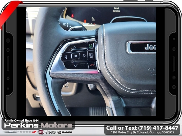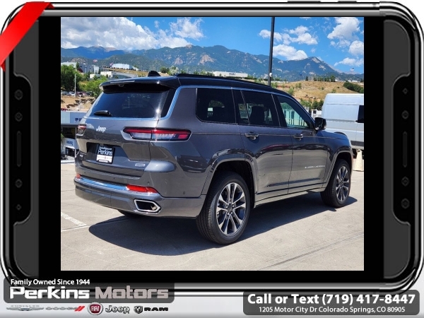Factory MSRP: $76,430 $11,729 off MSRP! Baltic Gray Metallic Clearcoat 2024 Jeep Grand Cherokee L Overland 4WD 8-Speed Automatic 3.6L V6 24V VVT<br>ABS brakes, Alloy wheels, Compass, Electronic Stability Control, Emergency communication system, Front dual zone A/C, Heated door mirrors, Heated front seats, Heated rear seats, Illuminated entry, Low tire pressure warning, Navigation System, Power Liftgate, Power moonroof, Remote keyless entry, Traction control.<br>Check us out at www.perkinsmotors.com to see our specials! Since opening our doors in 1944, we’ve been proud to serve Colorado Springs, CO, and the surrounding areas of Pueblo, Castle Rock and Denver, CO. Throughout this time of being family owned for 80 years, we’ve maintained a firm commitment to our customers: to offer a wide selection of New Chrysler, Dodge, Fiat, Jeep, and Ram vehicles and quality pre-owned vehicles, and provide a quick, no-hassle car-buying process that ensures everyone drives off the lot satisfied with their purchase.<br><br>ABS brakes, Alloy wheels, Compass, Electronic Stability Control, Emergency communication system, Front dual zone A/C, Heated door mirrors, Heated front seats, Heated rear seats, Illuminated entry, Low tire pressure warning, Navigation System, Power Liftgate, Power moonroof, Remote keyless entry, Traction control, 10 Speakers, 3.45 Rear Axle Ratio, 3rd row seats: split-bench, 4-Wheel Disc Brakes, Active Noise Control System, Adaptive suspension, Air Conditioning, AM/FM radio: SiriusXM with 360L, Anti-whiplash front head restraints, Audio memory, Auto High-beam Headlights, Auto-dimming door mirrors, Auto-dimming Rear-View mirror, Auto-leveling suspension, Automatic temperature control, Brake assist, Bumpers: body-color, Cruise Control, Delay-off headlights, Driver door bin, Driver vanity mirror, Dual front impact airbags, Dual front side impact airbags, Four wheel independent suspension, Front anti-roll bar, Front Bucket Seats, Front Center Armrest w/Storage, Front fog lights, Front reading lights, Fully automatic headlights, Garage door transmitter, Heated steering wheel, Knee airbag, Memory seat, Nappa Leather Seats, Normal Duty Suspension, Occupant sensing airbag, Outside temperature display, Overhead airbag, Overhead console, Panic alarm, Passenger door bin, Passenger vanity mirror, Power door mirrors, Power driver seat, Power Fold Seatbacks, Power passenger seat, Power steering, Power windows, Radio data system, Radio: Uconnect 5 Nav w/10.1 Display, Rain sensing wipers, Rear air conditioning, Rear anti-roll bar, Rear reading lights, Rear window defroster, Rear window wiper, Reclining 3rd row seat, Security system, Speed-Sensitive Wipers, Split folding rear seat, Spoiler, Steering wheel memory, Steering wheel mounted audio controls, Tachometer, Telescoping steering wheel, Tilt steering wheel, Trip computer, Turn signal indicator mirrors, Variably intermittent wipers, Ventilated front seats, Voltmeter, and Wheels: 20 x 8.5 Machined Face Aluminum.