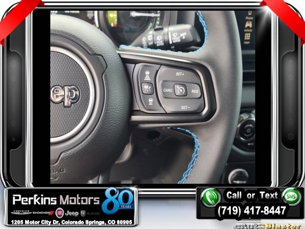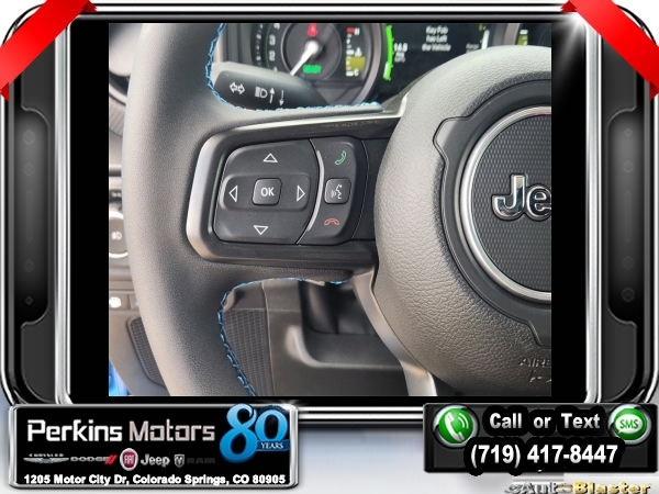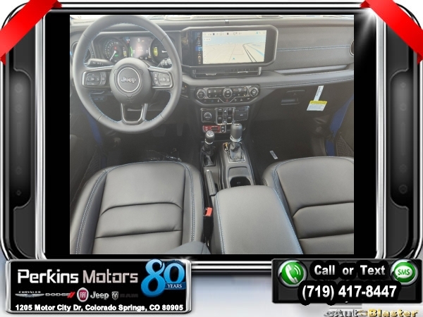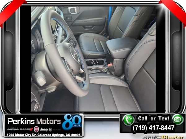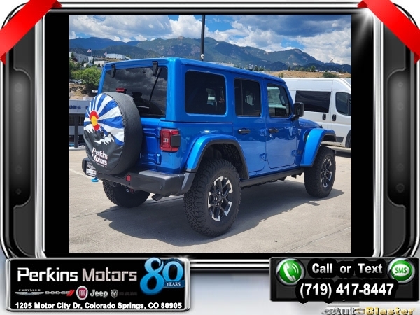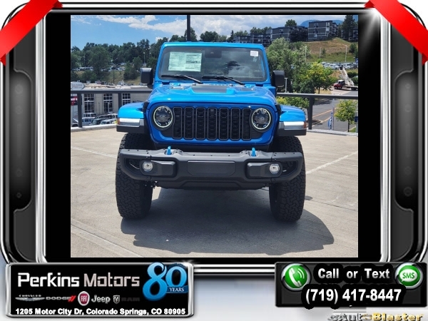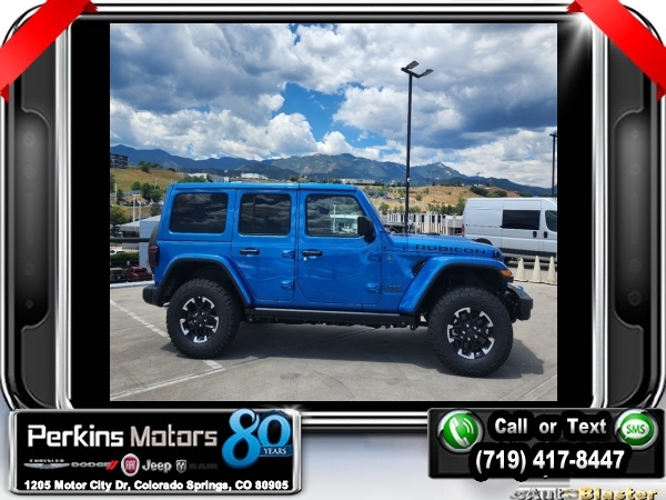 Factory MSRP: $72,835 $11,250 off MSRP! Priced below KBB Fair Purchase Price! Hydro Blue Pearlcoat 2024 Jeep Wrangler Rubicon X 4xe 4WD 8-Speed Automatic 2.0L I4 DOHC<br>2.0L I4 DOHC, ABS brakes, Alloy wheels, Compass, Electronic Stability Control, Front dual zone A/C, Heated door mirrors, Illuminated entry, Low tire pressure warning, ParkView Rear Back-Up Camera, Passenger door bin, Remote keyless entry, Traction control.<br>Check us out at www.perkinsmotors.com to see our specials! Since opening our doors in 1944, we’ve been proud to serve Colorado Springs, CO, and the surrounding areas of Pueblo, Castle Rock and Denver, CO. Throughout this time of being family owned for 80 years, we’ve maintained a firm commitment to our customers: to offer a wide selection of New Chrysler, Dodge, Fiat, Jeep, and Ram vehicles and quality pre-owned vehicles, and provide a quick, no-hassle car-buying process that ensures everyone drives off the lot satisfied with their purchase.<br><br>2.0L I4 DOHC, ABS brakes, Alloy wheels, Compass, Electronic Stability Control, Front dual zone A/C, Heated door mirrors, Illuminated entry, Low tire pressure warning, ParkView Rear Back-Up Camera, Passenger door bin, Remote keyless entry, Traction control, 12.3 Touchscreen Display, 4-Wheel Disc Brakes, 4.10 Rear Axle Ratio, 4G LTE Wi-Fi Hot Spot, 8 Speakers, Air Conditioning, AM/FM radio: SiriusXM, Apple CarPlay, Apple CarPlay/Android Auto, Automatic temperature control, Brake assist, Connectivity - US/Canada, Cruise Control, Delay-off headlights, Disassociated Touchscreen Display, Driver door bin, Driver vanity mirror, Dual front impact airbags, Dual front side impact airbags, Front anti-roll bar, Front Bucket Seats, Front Center Armrest w/Storage, Front fog lights, Front reading lights, Fully automatic headlights, Google Android Auto, Integrated Center Stack Radio, Integrated roll-over protection, Integrated Voice Command w/Bluetooth, Occupant sensing airbag, Outside temperature display, Overhead airbag, Panic alarm, Passenger vanity mirror, Performance Suspension, Power door mirrors, Power steering, Power windows, Radio data system, Radio: Uconnect 5 w/12.3 Display, Rear anti-roll bar, Rear reading lights, Security system, Split folding rear seat, Steering wheel mounted audio controls, Sustainable Premium Cloth Seats, Tachometer, Telescoping steering wheel, Tilt steering wheel, Trip computer, Variably intermittent wipers, Voltmeter, and Wheels: 17 x 7.5 Machined w/Black Pockets. Sale price includes all manufacture's incentives and dealer discounts. Sale price not available on lease or compatible with special APR. $3000 - 2024 National Retail Consumer Cash . Exp. 07/31/2024 $3750 - Federal EV Tax Credit. Exp. 12/31/2024