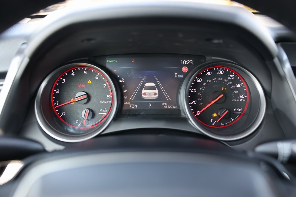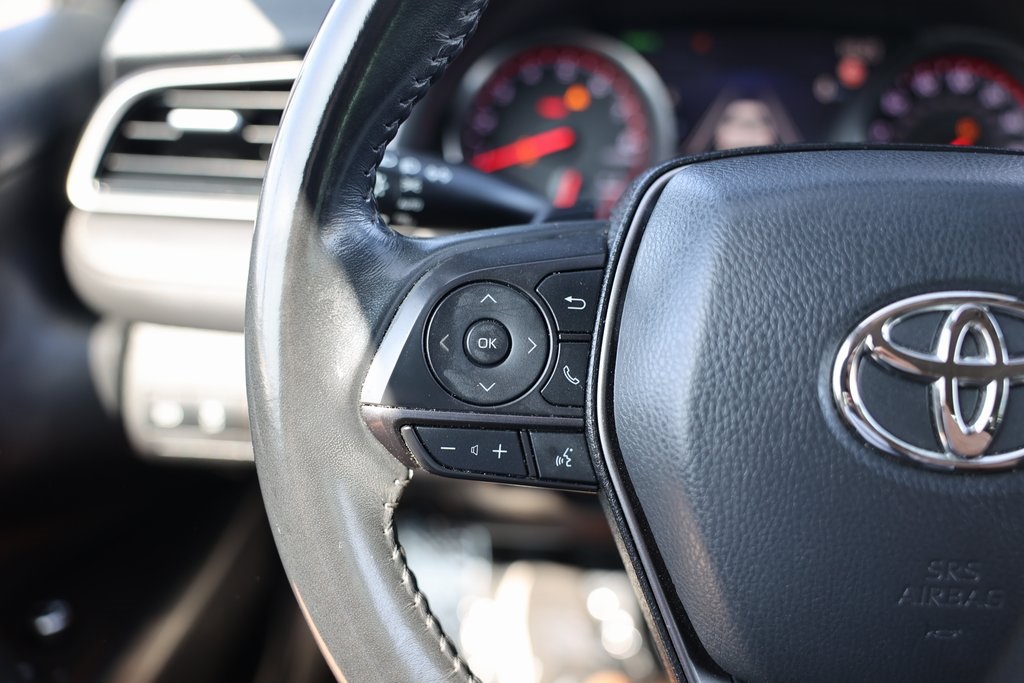 Priced below KBB Fair Purchase Price!NEW FILTERS, Camry XSE, 4D Sedan, 2.5L I4 DOHC 16V, 8-Speed Automatic, FWD, Midnight Black Metallic, Black w/Fabric Seat Trim w/Sport SofTex, 6 Speakers, Active Cruise Control, Auto-dimming Rear-View mirror, Exterior Parking Camera Rear, Garage door transmitter: HomeLink, Heated front seats, Multi-Stage Heated Front Bucket Seats, Power driver seat, Power passenger seat, Security system, Sport Preferred Accessory Package (TMS), Steering wheel mounted audio controls, Wheels: 8.0J x 19" Black Machined-Finish Alloy.Clean CARFAX.CARFAX One-Owner.