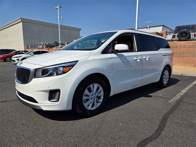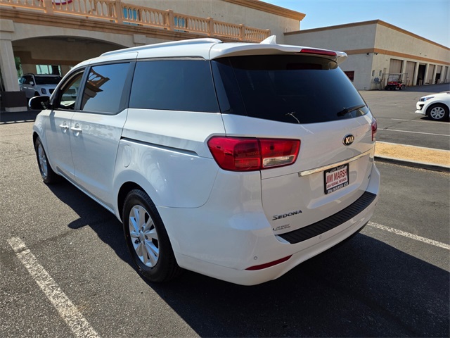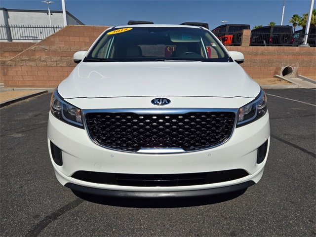 Recent Arrival!Odometer is 12474 miles below market average!Clear White 2018 Kia Sedona LX FWD 6-Speed Automatic with Sportmatic 3.3L V6 DGIIf you don't drive here, you can't save here!Awards: * 2018 KBB.com 10 Most Affordable 3-Row VehiclesPrice may not include recon fee. LX Advanced Technology Package (Autonomous Emergency Braking (AEB), Blind Spot Detection w/RCTA, Forward Collision Warning, Illuminated Dual-Level Glovebox w/Cooling, Lane Departure Warning System, Power Adjustable/Folding Heated Exterior Mirrors, Smart Cruise Control, and Supervision Meter Cluster w/TFT Color LCD Screen), LX Essentials Premium Package (Dual Glovebox w/Cooling, Front & Rear Park Assist, Heated Front Seats, Illuminated Ignition Cylinder Ring, Leather Wrapped Gearshift Knob, Leather Wrapped Steering Wheel, Leather-Trimmed Seats, OLED Meter Display, Push Button Start, Silver Painted Roof Rails, Sunshades 2nd & 3rd Row, and UVO eServices), 17" x 6.5J Alloy Wheels, 2-Way Power Driver Lumbar Support, 3.041 Axle Ratio, 3rd row seats: split-bench, 4-Wheel Disc Brakes, 6 Speakers, 8-Way Power Driver Seat, ABS brakes, Air Conditioning, Alloy wheels, AM/FM radio: SiriusXM, Brake assist, Bumpers: body-color, Cargo Net, Carpeted Floor Mats, CD player, Cloth Seat Trim w/YES Essentials, Delay-off headlights, Driver door bin, Driver vanity mirror, Dual front impact airbags, Dual front side impact airbags, Electronic Stability Control, Exterior Parking Camera Rear, Four wheel independent suspension, Front anti-roll bar, Front Bucket Seats, Front Captain Seats, Front Center Armrest, Front reading lights, Fully automatic headlights, Illuminated entry, Low tire pressure warning, Occupant sensing airbag, Outside temperature display, Overhead airbag, Overhead console, Panic alarm, Passenger door bin, Passenger vanity mirror, Power door mirrors, Power driver seat, Power steering, Power windows, Radio: AM/FM/CD/MP3/SiriusXM Audio System, Rear air conditioning, Rear anti-roll bar, Rear reading lights, Rear window defroster, Rear window wiper, Reclining 3rd row seat, Remote keyless entry, Security system, Speed control, Speed-sensing steering, Split folding rear seat, Spoiler, Steering wheel mounted audio controls, Tachometer, Telescoping steering wheel, Tilt steering wheel, Traction control, Trip computer, Turn signal indicator mirrors, and Variably intermittent wipers.