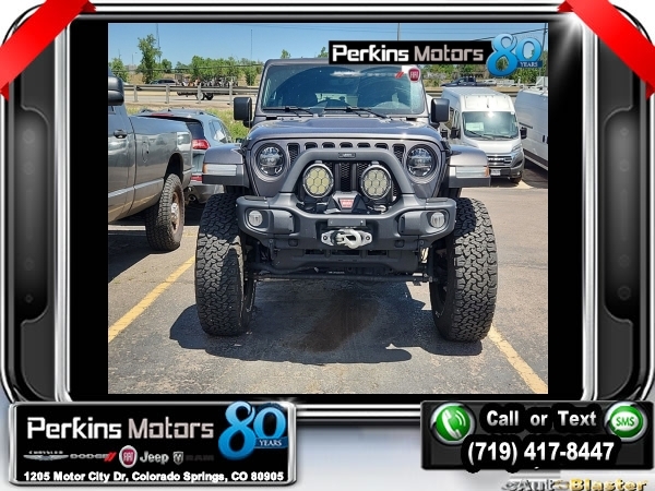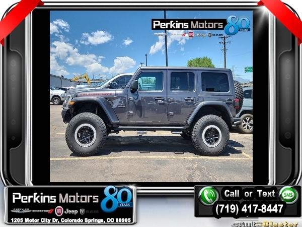 Granite Crystal Metallic Clearcoat 4WD 3.6L V6 24V VVT 8-Speed Automatic<br><br>AEV SUSPENSION LIFT, 240 Amp Alternator, 35 Tire Suspension, 7 & 4 Pin Wiring Harness, 700 Amp Maintenance Free Battery, Air Conditioning, Alpine Premium Audio System, Automatic temperature control, Auxiliary Switches, Body Color 3-Piece Hard Top, Class II Receiver Hitch, Cold Weather Group, Heated Front Seats, Heated Steering Wheel, Quick Order Package 25R, Radio: Uconnect 4C Nav w/8.4 Display, Trailer Tow & HD Electrical Group.<br><br><br>CARFAX One-Owner. Clean CARFAX.<br><br>Check us out at www.perkinsmotors.com to see our specials! Since opening our doors in 1944, we’ve been proud to serve Colorado Springs, CO, and the surrounding areas of Pueblo, Castle Rock and Denver, CO. Throughout this time of being family owned for 80 years, we’ve maintained a firm commitment to our customers: to offer a wide selection of New Chrysler, Dodge, Fiat, Jeep, and Ram vehicles and quality pre-owned vehicles, and provide a quick, no-hassle car-buying process that ensures everyone drives off the lot satisfied with their purchase.<br><br><br>Cold Weather Group (Heated Front Seats and Heated Steering Wheel), Quick Order Package 25R, Trailer Tow & HD Electrical Group (240 Amp Alternator, 7 & 4 Pin Wiring Harness, 700 Amp Maintenance Free Battery, Auxiliary Switches, and Class II Receiver Hitch), 35 Tire Suspension, Air Conditioning, Alpine Premium Audio System, Automatic temperature control, Body Color 3-Piece Hard Top, Radio: Uconnect 4C Nav w/8.4 Display, 4-Wheel Disc Brakes, 4.10 Rear Axle Ratio, 8 Speakers, ABS brakes, Alloy wheels, AM/FM radio: SiriusXM, Apple CarPlay/Android Auto, Aux Battery, Brake assist, Compass, Cruise Control, Delay-off headlights, Driver door bin, Driver vanity mirror, Dual front impact airbags, Dual front side impact airbags, Electronic Stability Control, Front anti-roll bar, Front Bucket Seats, Front Center Armrest w/Storage, Front dual zone A/C, Front fog lights, Front reading lights, Fully automatic headlights, Garage door transmitter, Heated door mirrors, Illuminated entry, Integrated roll-over protection, Leather steering wheel, Low tire pressure warning, Non-Lock Fuel Cap w/o Discriminator, Occupant sensing airbag, Outside temperature display, Panic alarm, ParkView Rear Back-Up Camera, Passenger door bin, Passenger vanity mirror, Performance Suspension, Power door mirrors, Power steering, Power windows, Premium Cloth Low-Back Bucket Seats, Radio data system, Radio: Uconnect 4 w/7 Display, Rear anti-roll bar, Rear reading lights, Remote keyless entry, Security system, Split folding rear seat, Steering wheel mounted audio controls, Stop-Start Dual Battery System, Tachometer, Telescoping steering wheel, Tilt steering wheel, Traction control, Trip computer, Variably intermittent wipers, Voltmeter, and Wheels: 17 x 7.5 Machined w/Black Pockets.