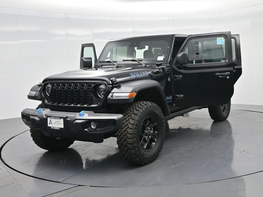 2024 Jeep Wrangler 4xe Willys 4xe Black Clearcoat Dealer Discount of $3,750 off MSRPExplore the latest models from Chrysler, Dodge, Jeep, and Ram at Aaron CDJR of Norco. Whether you're looking for a rugged Jeep Wrangler, a powerful Ram truck, or a sleek Chrysler sedan, our vast inventory has something for everyone. Experience exceptional customer service and find the perfect vehicle to match your lifestyle.2.0L I4 DOHC, ABS brakes, Alloy wheels, Compass, Electronic Stability Control, Front dual zone A/C, Heated door mirrors, Illuminated entry, Low tire pressure warning, ParkView Rear Back-Up Camera, Passenger door bin, Remote keyless entry, Traction control. 4WD 8-Speed Automatic 2.0L I4 DOHC Price includes: $3750 - Federal EV Tax Credit. Exp. 12/31/2024 $500 - 2024 National Holiday Bonus Cash. Exp. 01/02/2025 $7500 - 2024 National Retail Consumer Cash . Exp. 01/02/2025