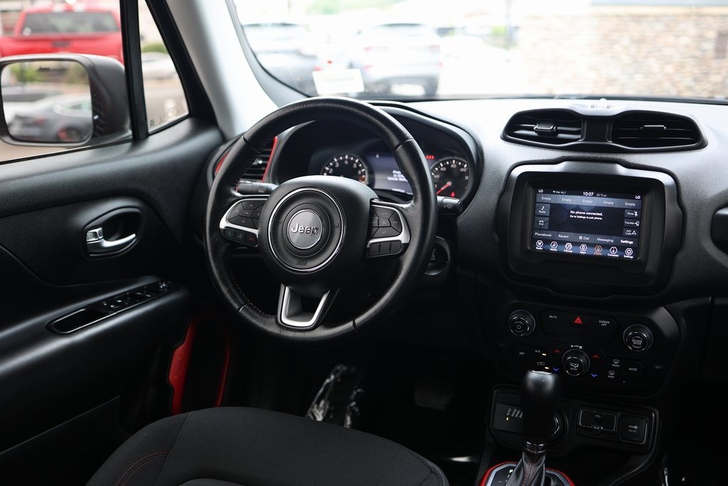Priced below KBB Fair Purchase Price!NEW FILTERS, Renegade Trailhawk, 4D Sport Utility, 1.3L I4, 9-Speed 948TE Automatic, 4WD, Black Clearcoat, Black w/Cloth Low-Back Bucket Seats, 17" x 6.5" Aluminum Wheels, 177HP Power Rating, 40/20/40 Rear Seat w/Trunk Pass-Thru, AM/FM radio: SiriusXM, Apple CarPlay/Android Auto, Auto-Dimming Rear-View Mirror, Compass, Four wheel independent suspension, Front dual zone A/C, Fully automatic headlights, Keyless Entry w/Panic Alarm, ParkView Rear Back-Up Camera, Passive Entry Remote Start Package, Popular Equipment Group (Trailhawk), Power Adjust 8-Way Driver Seat, Quick Order Package 22C, Radio: Uconnect 4 w/7" Display, Roof rack: rails only, Stop-Start Multiple VSM System, Traction control.