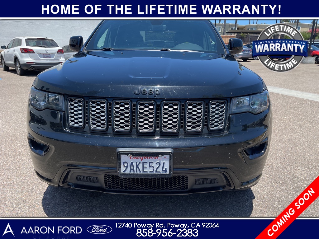 1-Year SiriusXM Guardian Trial, 1-Year SiriusXM Radio Service, 115V Auxiliary Power Outlet, 5-Year SiriusXM Traffic Service, 5-Year SiriusXM Travel Link Service, 8.4" Touchscreen Display, Air Conditioning, Altitude Grille, Altitude IV Package, Apple CarPlay, Apple CarPlay/Android Auto, Auto-Dimming Rear-View Mirror, Black Suede Seats w/Black Stitching, Body Color Claddings, Body Color Fascia, Body Color Shark Fin Antenna, Dark Day Light Opening Moldings, Dark Headlamp Bezel Finish, Dark Lens Taillamps, Delete Laredo Badge, For Details Visit DriveUconnect.com, Front Accent/Body Color Fascia, Fully automatic headlights, Gloss Black Rear Fascia Applique, Google Android Auto, GPS Antenna Input, GPS Navigation, HD Radio, Integrated Voice Command w/Bluetooth, Jeep Black Gloss Badging, Power 4-Way Driver Lumbar Adjust, Power 8-Way Driver/Manual Passenger Seat, Power Liftgate, Quick Order Package 2BZ Altitude, Radio: Uconnect 4C Nav w/8.4" Display, Rear Accent/Body Color Fascia, Rear Fascia Black MIC Step Pad, Security & Convenience Group, Security Alarm, Single Exhaust w/Bright Tip, SiriusXM Satellite Radio, SiriusXM Traffic Plus, SiriusXM Travel Link, Steering Wheel Mounted Audio Controls, Universal Garage Door Opener, USB Host Flip, Wheels: 20" x 8.0" Gloss Black Aluminum.Odometer is 6618 miles below market average!To see more quality vehicles like this one right just click on AaronFordofPoway.com or dial (858) 748-1400.Awards: * 2018 KBB.com 10 Most Awarded Brands