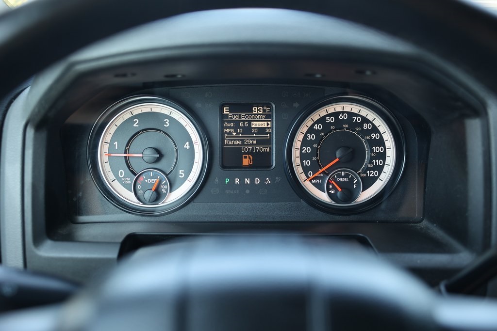 Custom Wheels and Tires, 3500 Big Horn, 4D Mega Cab, Cummins 6.7L I6 Turbodiesel, Aisin 6-Speed Automatic, 4WD, Brilliant Black Crystal Pearlcoat, Diesel Gray/Black w/Cloth 40/20/40 Bench Seat or Premium Cloth 40/20/40 Bench Seat or Premium Cloth Bucket Seats, 1 Yr. Trial (Registration Required), 115V Auxiliary Power Outlet, 3.73 Rear Axle Ratio, 40/20/40 Split Bench Seat, 6 Speakers, 8.4" Touchscreen Display, Big Horn Badge, Big Horn Regional Package, Bright/Bright Billets Grille, CTR Stop Lamp w/Cargo View Camera, Fog Lamps, For Details Visit DriveUconnect.com, Front Armrest w/Cupholders, Front Center Seat Cushion Storage, GPS Navigation, HD Radio, Leather Wrapped Steering Wheel, Low tire pressure warning, Media Hub (2 USB, AUX), Overhead airbag, Power 10-Way Driver Seat, Power Lumbar Adjust, Premium Cloth 40/20/40 Bench Seat, Protection Group, Quick Order Package 28Z Big Horn, Radio: Uconnect 8.4 NAV, Rear 60/40 Split Folding Seat, Remote SD Card Slot, Remote Start System, Remote Start System w/RA3/RA4, Remote USB Port - Charge Only, SIRIUSXM Traffic, SiriusXM Travel Link, Split folding rear seat, Steering Wheel Mounted Audio Controls, Storage Tray, Traction control, Uconnect Access, Underhood Lamp.Clean CARFAX.CARFAX One-Owner.