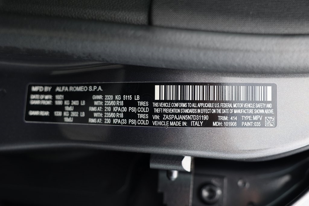 Priced below KBB Fair Purchase Price!NEW FILTERS, Stelvio Sprint, 4D Sport Utility, I4, 8-Speed Automatic, RWD, Vesuvio Gray Metallic, Black w/Sport Leather Seats or Sparco Leather & Alcantara Race Seats, 8 Speakers, Apple CarPlay/Android Auto, Compass, Front dual zone A/C, Fully automatic headlights, Heated front seats, Heated rear seats, Knee airbag, Low tire pressure warning, Memory seat, Navigation System, ParkView Rear Back-Up Camera, Power passenger seat, Quick Order Package 22L Sprint, Roof rack: rails only, Wheels: 18" x 8.0" Multi Spoke.CARFAX One-Owner.