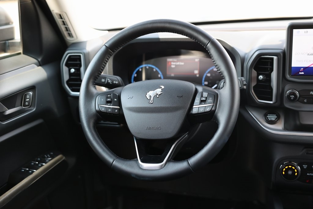 Shadow Black 2023 Ford Bronco Sport Big Bend 4WD 8-Speed Automatic 1.5L EcoBoost 6 Speakers, Air Conditioning, Convenience Package, Equipment Group 200A, Front Driver & Passenger Seatback Zipper Pockets, Fully automatic headlights, Heated Front Bucket Seats, Intelligent Access (Lock/Unlock), Leather-Wrapped Steering Wheel, LED Fog Lamps, Rear Parking Sensors, SYNC 3 Communications & Entertainment System, SYNC 3/Apple CarPlay/Android Auto, Universal Garage Door Opener (UGDO), Wheels: 17" Carbonized Gray-Painted Aluminum, Wireless Charging Pad.Recent Arrival! Odometer is 2865 miles below market average! 25/28 City/Highway MPG