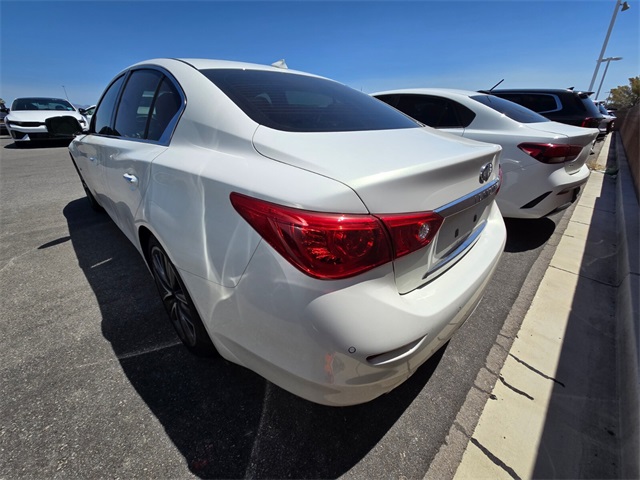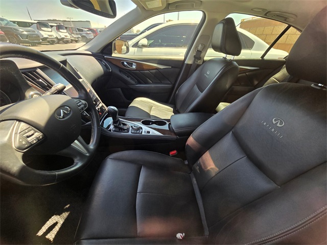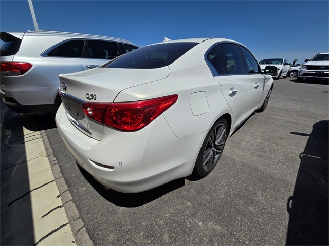 Recent Arrival!Priced below KBB Fair Purchase Price!Odometer is 28163 miles below market average!20/29 City/Highway MPGMoonlight White 2014 INFINITI Q50 Premium RWD 7-Speed Automatic with Manual Shift 3.7L V6 DOHC 24VIf you don't drive here, you can't save here!Awards: * 2014 KBB.com 10 Best Luxury Cars Under $40,000 * 2014 IIHS Top Safety Pick+ * 2014 KBB.com 10 Best Certified Pre-Owned Luxury Cars Under $30,000Price may not include recon fee. 19" Sport Tire & Wheel Package (19" Aluminum-Alloy Wheels), Deluxe Touring Package (60/40 Split-Folding Rear Seats, Power Tilt & Telescopic Steering Column, and Rain-Sensing Front Windshield Wipers), Leather Seating Package (Driver Seat 2-Way Power Lumbar and Leather-Appointed Seats), Navigation Package (INFINITI InTouch Navigation System), Spare Tire Package, Technology Package (Back-Up Collision Intervention, Forward Emergency Braking, Front Seat Pre-Crash Seat Belts, High Beam Lighting On/Off Assistance, and Intelligent Cruise Control w/Full Speed Range), 4-Wheel Disc Brakes, ABS brakes, Activation Disclaimer, Air Conditioning, Alloy wheels, AM/FM radio: SiriusXM, Anti-whiplash front head restraints, Automatic temperature control, Brake assist, Bumpers: body-color, CD player, Delay-off headlights, Driver door bin, Driver vanity mirror, Dual front impact airbags, Dual front side impact airbags, Electronic Stability Control, Floor Mats, Four wheel independent suspension, Front anti-roll bar, Front Bucket Seats, Front Center Armrest, Front dual zone A/C, Front fog lights, Front reading lights, Fully automatic headlights, Heated door mirrors, Illuminated entry, Leather Shift Knob, Leather steering wheel, Literature Kit, Low tire pressure warning, Occupant sensing airbag, Outside temperature display, Overhead airbag, Overhead console, Panic alarm, Passenger door bin, Passenger vanity mirror, Power door mirrors, Power driver seat, Power passenger seat, Power steering, Power windows, Radio data system, Radio: AM/FM/CD w/MP3 Playback Capability, Rear anti-roll bar, Rear reading lights, Rear seat center armrest, Rear window defroster, Remote keyless entry, Security system, Speed control, Speed-sensing steering, Speed-Sensitive Wipers, Steering wheel mounted audio controls, Tachometer, Telescoping steering wheel, Tilt steering wheel, Traction control, Trip computer, Turn signal indicator mirrors, and Variably intermittent wipers.