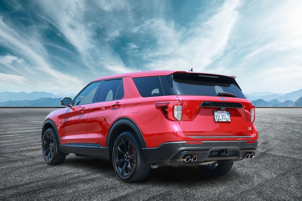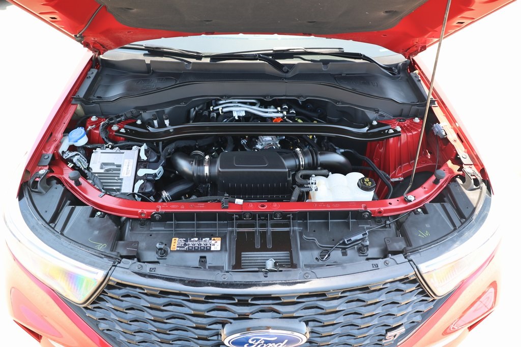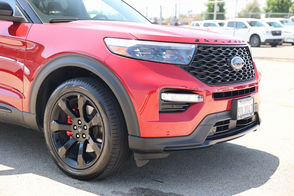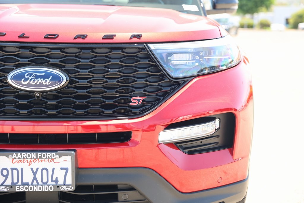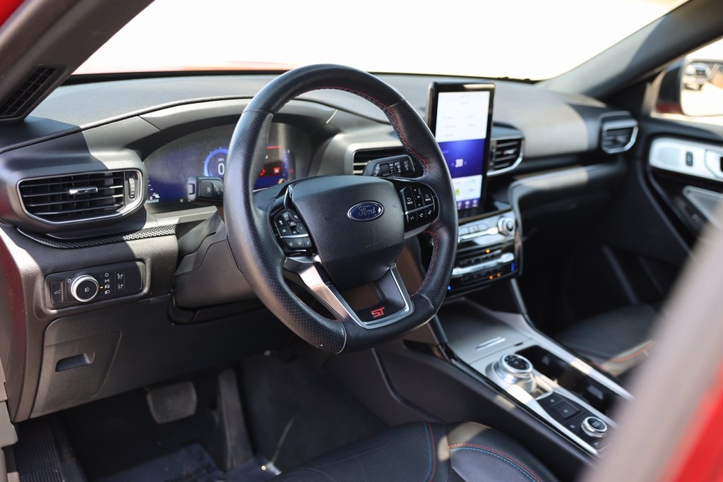 Rapid Red Metallic Tinted Clearcoat 2022 Ford Explorer ST 4WD 10-Speed Automatic 3.0L EcoBoost V6 4WD, 10.1" LCD Capacitive Portrait Touchscreen, 110V/150W AC Power Outlet, 2 Additional Speakers, 360-Degree Camera w/Split View, Air Conditioning, Auto-Dimming Rearview Mirror (Interior), Equipment Group 401A, Evasive Steering Assist, Exterior Parking Camera Rear, Ford Co-Pilot360 Assist+, FordPass Connect, Front fog lights, Front Parking Sensors, Front Rain-Sensing Wipers, Fully automatic headlights, Hands-Free Foot-Activated Liftgate, Intelligent Adaptive Cruise Control, Leather Seating Surface Sprt Captain's Chairs, Memory Driver's Seat, Performance Front & Rear Brakes, Power Liftgate, Power Tilt/Telescoping Steering Column, Race Red Front & Rear Floor Mats, Radio: B&O Sound System by Bang & Olufsen, Rear air conditioning, Reverse Brake Assist, Second Row Heated Seats, Sideview Mirrors w/Gloss Black Caps, Speed Sign Recognition, ST Appearance Package, ST High Package, ST Street Pack, SYNC 3 Communications & Entertainment System, SYNC 3/Apple CarPlay/Android Auto, Technology Package, Third Row PowerFold (Folds Flat), Twin Panel Moonroof, Universal Garage Door Opener (UGDO), Ventilated front seats, Voice-Activated Touchscreen Navigation System, Wheels: 21" Aluminum, Wireless Charging Pad.Recent Arrival!