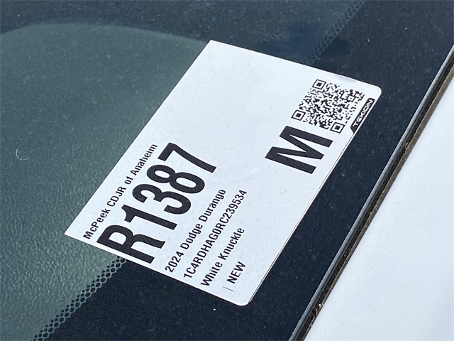 White Knuckle Clearcoat 2024 Dodge Durango SXT RWD 8-Speed Automatic 3.6L V6 24V VVT INTERIOR & EXTERIOR PROFESSIONALLY DETAILED FOR DELIVERY, MCPEEK CHRYSLER DODGE JEEP RAM FAMILY OWNED AND OPERATED SINCE 1961 !!!!!.All prices are subject to change without notice. All vehicles subject to prior sale. Advertised price does not include Dealer Installed Accessories or Commercial Bed/Body Upfits. Please contact dealer to receive the most up to date pricing information and complete details. 19/26 City/Highway MPGReceive Free lube and oil filter changes for up to 45,000 miles for 3 years!!! McPeek's Dodge of Anahiem 1221 S. Auto Center Drive Anahiem, CA 92806 714-262-4902. Price includes: $1000 - 2024 National Engine Bonus Cash. Exp. 01/02/2025 $2930 - 2024 National Power Dollars Retail Bonus Cash . Exp. 01/02/2025 $500 - 2024 National Holiday Bonus Cash. Exp. 01/02/2025