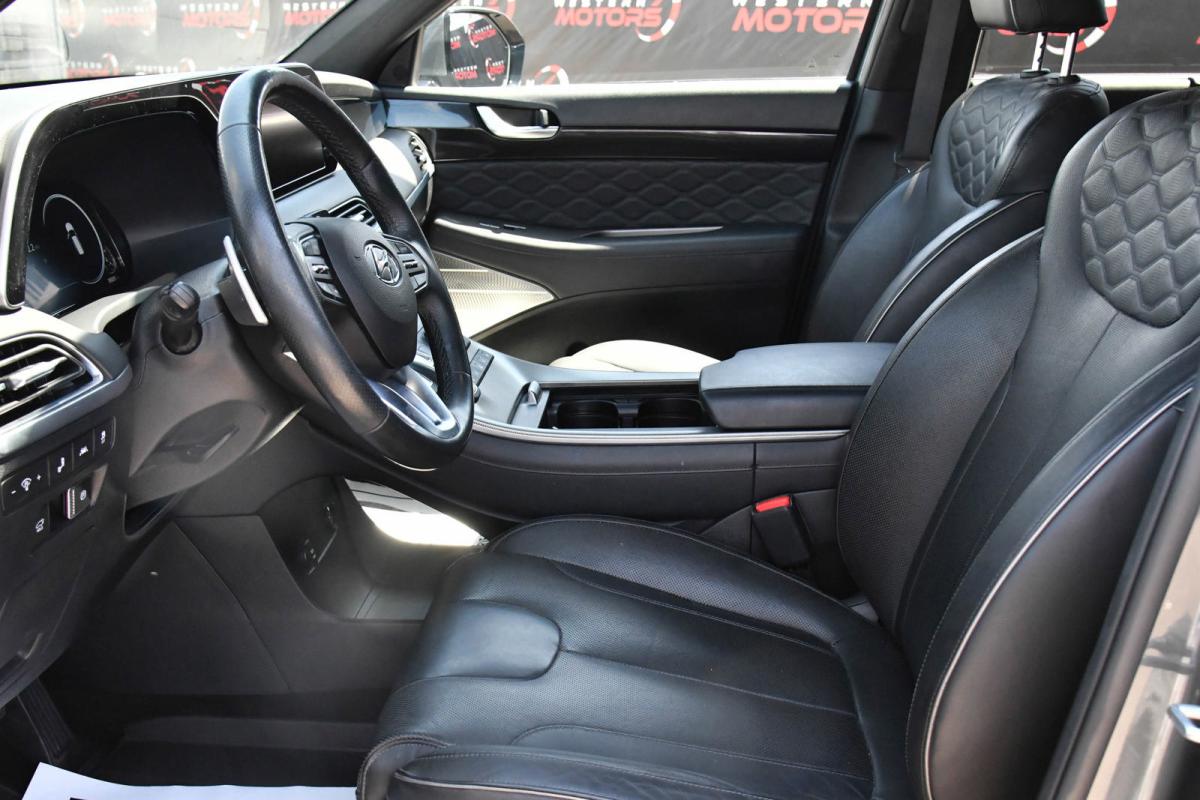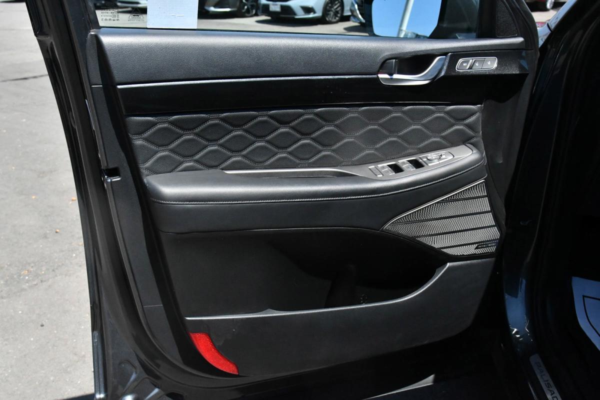 Boasts 26 Highway MPG and 19 City MPG! This Hyundai Palisade boasts a Regular Unleaded V-6 3.8 L/231 engine powering this Automatic transmission. WINTER PACKAGE -inc: All-Season Fitted Liners, Mudguards, WHEEL LOCKS, RAINFOREST.*This Hyundai Palisade Comes Equipped with These Options *FIRST AID KIT, CARPETED FLOOR MATS, CARGO TRAY, CARGO NET, BUMPER APPLIQUE, BLACK, PREMIUM NAPPA LEATHER SEAT TRIM, Wheels: 20 x 7.5J Calligraphy Exclusive Alloy, Wheels w/Machined w/Painted Accents Accents, Valet Function, Turn-By-Turn Navigation Directions.