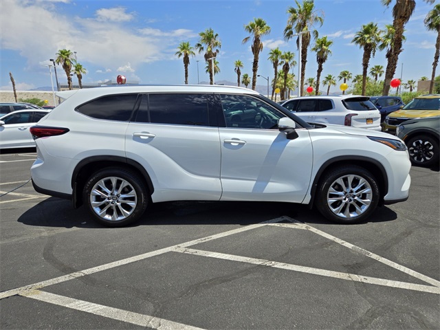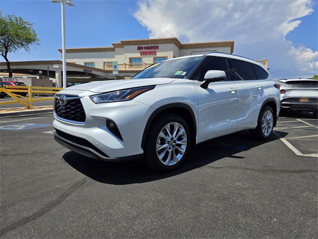Odometer is 5518 miles below market average!21/28 City/Highway MPGWhite 2023 Toyota Highlander Limited AWD 8-Speed Automatic 2.4L I4 PDI Turbocharged DOHC 16V LEV3-SULEV30 265hp AWD.If you don't drive here, you can't save here!Price may not include recon fee. AWD, 3.329 Axle Ratio, 3rd row seats: split-bench, 4-Wheel Disc Brakes, ABS brakes, Air Conditioning, Alloy wheels, AM/FM radio: SiriusXM, Auto High-beam Headlights, Automatic temperature control, Brake assist, Bumpers: body-color, Delay-off headlights, Driver door bin, Driver vanity mirror, Dual front impact airbags, Dual front side impact airbags, Electronic Stability Control, Emergency communication system: Safety Connect (up to 10-year trial subscription), Four wheel independent suspension, Front anti-roll bar, Front Bucket Seats, Front Center Armrest, Front dual zone A/C, Front reading lights, Fully automatic headlights, Heated door mirrors, Illuminated entry, Knee airbag, Low tire pressure warning, Occupant sensing airbag, Outside temperature display, Overhead airbag, Overhead console, Panic alarm, Passenger door bin, Passenger vanity mirror, Power door mirrors, Power driver seat, Power steering, Power windows, Rear air conditioning, Rear anti-roll bar, Rear reading lights, Rear window defroster, Rear window wiper, Reclining 3rd row seat, Remote keyless entry, Speed control, Speed-sensing steering, Split folding rear seat, Spoiler, Steering wheel mounted audio controls, Tachometer, Telescoping steering wheel, Tilt steering wheel, Traction control, Trip computer, Turn signal indicator mirrors, and Variably intermittent wipers.