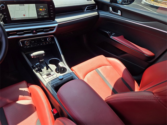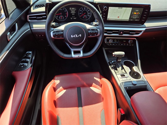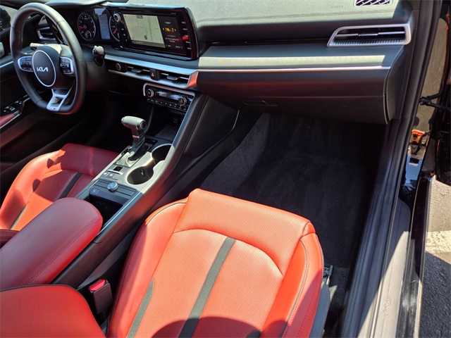 Priced below KBB Fair Purchase Price!Odometer is 8724 miles below market average!27/37 City/Highway MPGEbony Black 2022 Kia K5 GT-Line FWD 8-Speed Automatic I4If you don't drive here, you can't save here!Price may not include recon fee. GT-Line FWD Premium Package (Forward Collision Avoidance-Assist - Junction Turn, LED Projection Headlights, Navigation-Based Smart Cruise Control - Curve, and Smart Cruise Control w/Stop & Go), GT-Line Red Interior Package, 4-Wheel Disc Brakes, 6 Speakers, ABS brakes, Air Conditioning, Alloy wheels, AM/FM radio: SiriusXM, Apple CarPlay & Android Auto, Auto High-beam Headlights, Automatic temperature control, Brake assist, Bumpers: body-color, Carpeted Floor Mats, Cloth/Leatherette Seat Trim, Delay-off headlights, Driver door bin, Driver vanity mirror, Dual front impact airbags, Dual front side impact airbags, Electronic Stability Control, Four wheel independent suspension, Front anti-roll bar, Front Center Armrest, Front dual zone A/C, Front fog lights, Front reading lights, Fully automatic headlights, Heated door mirrors, Illuminated entry, Knee airbag, Low tire pressure warning, Navigation System, Occupant sensing airbag, Outside temperature display, Overhead airbag, Overhead console, Panic alarm, Passenger door bin, Passenger vanity mirror, Power door mirrors, Power driver seat, Power steering, Power windows, Radio data system, Radio: AM/FM/MP3 Audio System, Rear anti-roll bar, Rear seat center armrest, Rear side impact airbag, Rear window defroster, Remote keyless entry, Security system, Speed control, Speed-sensing steering, Split folding rear seat, Spoiler, Sport steering wheel, Steering wheel mounted audio controls, Tachometer, Telescoping steering wheel, Tilt steering wheel, Traction control, Trip computer, Turn signal indicator mirrors, Variably intermittent wipers, and Wheels: 7.5J x 18" Gloss Black Machined Finish Alloy.