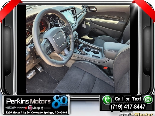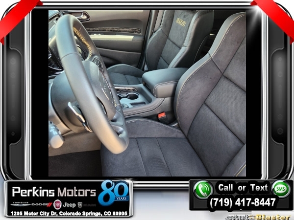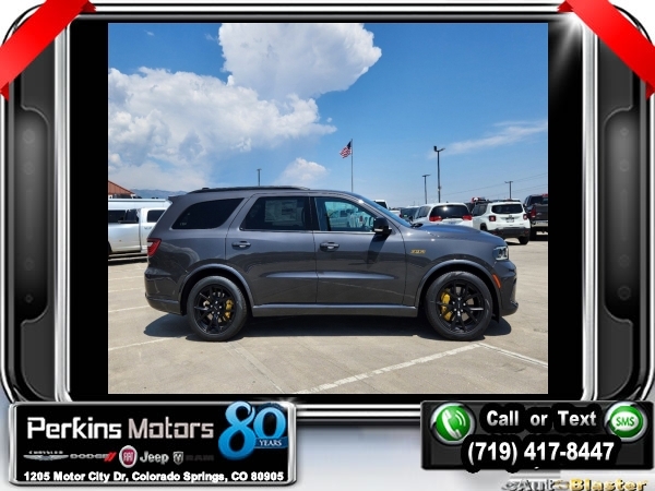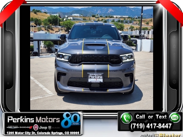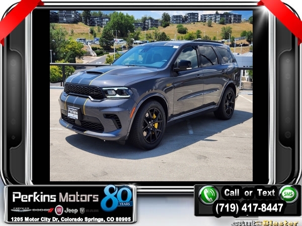 Factory MSRP: $91,785 $8,750 off MSRP! Priced below KBB Fair Purchase Price! Vapor Gray 2024 Dodge Durango SRT 392 AWD 8-Speed Automatic SRT HEMI 6.4L V8 MDS<br>MARKET ADJUSTMENT, AWD, ABS brakes, Alloy wheels, Compass, Electronic Stability Control, Emergency communication system, Front dual zone A/C, Heated door mirrors, Heated front seats, Heated rear seats, Illuminated entry, Low tire pressure warning, Navigation System, ParkView Rear Back-Up Camera, Power Liftgate, Remote keyless entry, Traction control.<br>Check us out at www.perkinsmotors.com to see our specials! Since opening our doors in 1944, we’ve been proud to serve Colorado Springs, CO, and the surrounding areas of Pueblo, Castle Rock and Denver, CO. Throughout this time of being family owned for 80 years, we’ve maintained a firm commitment to our customers: to offer a wide selection of New Chrysler, Dodge, Fiat, Jeep, and Ram vehicles and quality pre-owned vehicles, and provide a quick, no-hassle car-buying process that ensures everyone drives off the lot satisfied with their purchase.<br><br>AWD, ABS brakes, Alloy wheels, Compass, Electronic Stability Control, Emergency communication system, Front dual zone A/C, Heated door mirrors, Heated front seats, Heated rear seats, Illuminated entry, Low tire pressure warning, Navigation System, ParkView Rear Back-Up Camera, Power Liftgate, Remote keyless entry, Traction control, 3.70 Rear Axle Ratio, 3rd row seats: split-bench, 4-Wheel Disc Brakes, 9 Speakers, Adaptive suspension, Air Conditioning, AM/FM radio: SiriusXM w/360L, Anti-whiplash front head restraints, Apple CarPlay/Android Auto, Audio memory, Auto High-beam Headlights, Auto-dimming door mirrors, Auto-dimming Rear-View mirror, Automatic temperature control, Brake assist, Bumpers: body-color, Cruise Control, Delay-off headlights, Driver door bin, Driver vanity mirror, Dual front impact airbags, Dual front side impact airbags, Four wheel independent suspension, Front anti-roll bar, Front Bucket Seats, Front Center Armrest w/Storage, Front reading lights, Fully automatic headlights, Garage door transmitter, Gloss Black Exterior Mirrors, Heated steering wheel, Knee airbag, Leather Shift Knob, Leather steering wheel, Leather Trimmed Bucket Seats, Memory seat, Navigation system: TomTom, Occupant sensing airbag, Outside temperature display, Overhead airbag, Overhead console, Panic alarm, Passenger door bin, Passenger vanity mirror, Power door mirrors, Power driver seat, Power passenger seat, Power steering, Power windows, Radio data system, Radio: Uconnect 5 Nav w/10.1 Display, Rain sensing wipers, Rear air conditioning, Rear anti-roll bar, Rear reading lights, Rear window defroster, Rear window wiper, Security system, Speed-sensing steering, Speed-Sensitive Wipers, Split folding rear seat, Spoiler, Sport steering wheel, Steering wheel mounted audio controls, Tachometer, Telescoping steering wheel, Tilt steering wheel, Trip computer, Turn signal indicator mirrors, Variably intermittent wipers, Ventilated front seats, Voltmeter, and Wheels: 20 x 10 Hyper Black Aluminum. Sale price includes all manufacture's incentives and dealer discounts. Sale price not available on lease or compatible with special APR. $4750 - 2024 National Power Dollars Retail Bonus Cash . Exp. 09/03/2024 $4,000 - Exp. 09/03/2024