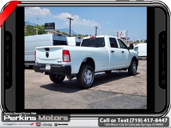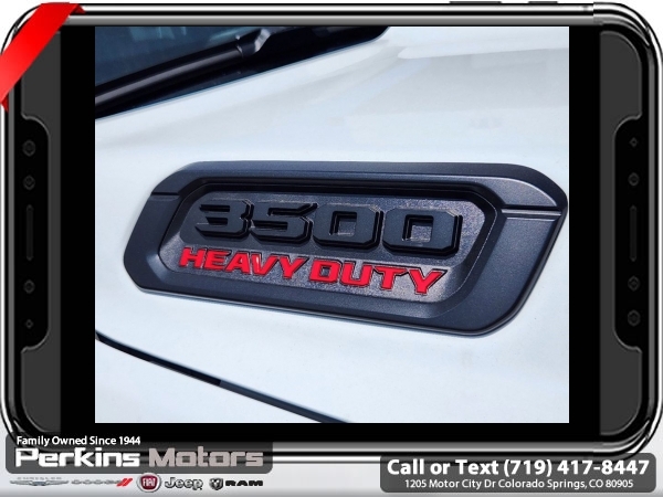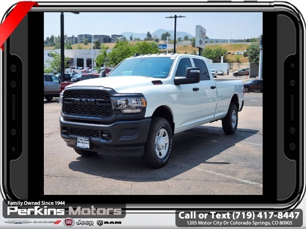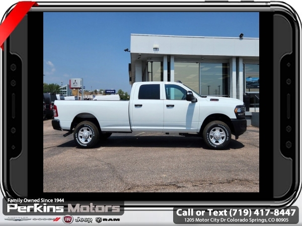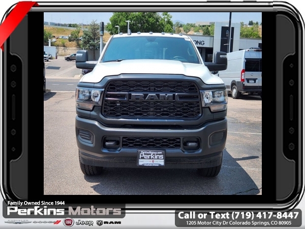 Factory MSRP: $57,995 $5,993 off MSRP! Bright White Clearcoat 2024 Ram 3500 Tradesman 4WD 8-Speed Automatic 6.4L V8<br>ABS brakes, Compass, Electronic Stability Control, Illuminated entry, Low tire pressure warning, Manual Folding Exterior Mirrors, ParkView Rear Back-Up Camera, Traction control.<br>Check us out at www.perkinsmotors.com to see our specials! Since opening our doors in 1944, we’ve been proud to serve Colorado Springs, CO, and the surrounding areas of Pueblo, Castle Rock and Denver, CO. Throughout this time of being family owned for 80 years, we’ve maintained a firm commitment to our customers: to offer a wide selection of New Chrysler, Dodge, Fiat, Jeep, and Ram vehicles and quality pre-owned vehicles, and provide a quick, no-hassle car-buying process that ensures everyone drives off the lot satisfied with their purchase.<br><br>ABS brakes, Compass, Electronic Stability Control, Illuminated entry, Low tire pressure warning, Manual Folding Exterior Mirrors, ParkView Rear Back-Up Camera, Traction control, 2 Way Rear Headrest Seat, 3.73 Axle Ratio, 4 Way Front Headrests, 4-Wheel Disc Brakes, 40/20/40 Split Bench Seat, 6 Speakers, Active Noise Control System, Air Conditioning, AM/FM radio, Black Exterior Mirrors, Brake assist, Center Hub, Cruise Control, Delay-off headlights, Driver door bin, Dual front impact airbags, Dual front side impact airbags, Electronically Controlled Throttle, Emergency communication system: SiriusXM Guardian, For Details Visit DriveUconnect.com, Front anti-roll bar, Front Armrest w/Cupholders, Front Center Armrest w/Storage, Front reading lights, Fully automatic headlights, Global Telematics Box Module (TBM), GPS Antenna Input, HD Vinyl 40/20/40 Split Bench Seat, Integrated Voice Command w/Bluetooth, Manual Adjust 4-Way Driver Seat, Manual Adjust 4-Way Front Passenger Seat, Manual Telescoping Mirrors, Occupant sensing airbag, Outside temperature display, Overhead airbag, Overhead console, Passenger door bin, Passenger vanity mirror, Power steering, Power windows, Radio data system, Radio: Uconnect 3 w/5 Display, Rear Folding Seat, Rear step bumper, Remote USB Port - Charge Only, Storage Tray, Tachometer, Tilt steering wheel, Tip Start, Variably intermittent wipers, Voltmeter, and Wheels: 18 x 8.0 SteeL. Sale price includes all manufacture's incentives and dealer discounts. Sale price not available on lease or compatible with special APR. $1500 - 2024 National Stellantis Loyalty Bonus Cash . Exp. 06/02/2025 Price includes $1,507 in dealer added accessories.