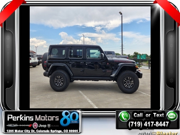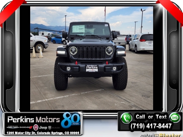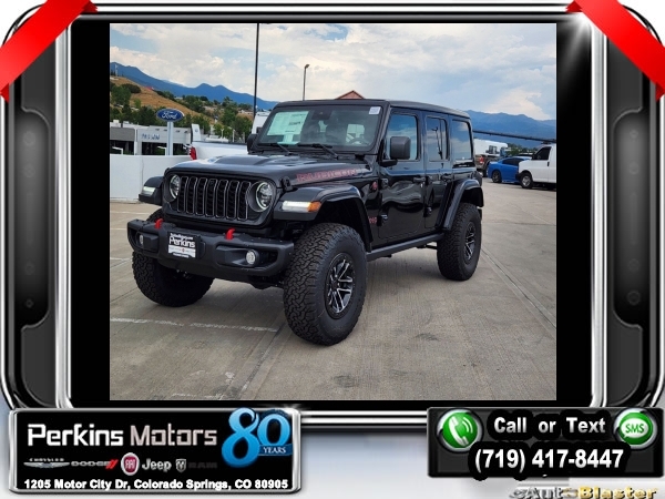 Factory MSRP: $76,640 $7,000 off MSRP! Black Clearcoat 2024 Jeep Wrangler Rubicon 4WD 8-Speed Automatic 3.6L V6 24V VVT<br>ABS brakes, Alloy wheels, Compass, Electronic Stability Control, Front dual zone A/C, Heated door mirrors, Illuminated entry, Low tire pressure warning, ParkView Rear Back-Up Camera, Remote keyless entry, Traction control.<br>Check us out at www.perkinsmotors.com to see our specials! Since opening our doors in 1944, we’ve been proud to serve Colorado Springs, CO, and the surrounding areas of Pueblo, Castle Rock and Denver, CO. Throughout this time of being family owned for 80 years, we’ve maintained a firm commitment to our customers: to offer a wide selection of New Chrysler, Dodge, Fiat, Jeep, and Ram vehicles and quality pre-owned vehicles, and provide a quick, no-hassle car-buying process that ensures everyone drives off the lot satisfied with their purchase.<br><br>ABS brakes, Alloy wheels, Compass, Electronic Stability Control, Front dual zone A/C, Heated door mirrors, Illuminated entry, Low tire pressure warning, ParkView Rear Back-Up Camera, Remote keyless entry, Traction control, 12.3 Touchscreen Display, 4-Wheel Disc Brakes, 4.10 Rear Axle Ratio, 8 Speakers, 97 MPH Vehicle Max Speed Calibration, Air Conditioning, AM/FM radio: SiriusXM, Apple CarPlay, Apple CarPlay/Android Auto, Automatic temperature control, Aux Battery, Brake assist, Cloth Low-Back Bucket Seats, Connectivity - US/Canada, Cruise Control, Delay-off headlights, Disassociated Touchscreen Display, Driver door bin, Driver vanity mirror, Dual front impact airbags, Dual front side impact airbags, Front anti-roll bar, Front Bucket Seats, Front Center Armrest w/Storage, Front fog lights, Front reading lights, Fully automatic headlights, Google Android Auto, Integrated Center Stack Radio, Integrated roll-over protection, Integrated Voice Command w/Bluetooth, Non-Lock Fuel Cap w/o Discriminator, Occupant sensing airbag, Outside temperature display, Overhead airbag, Panic alarm, Passenger door bin, Passenger vanity mirror, Performance Suspension, Power door mirrors, Power steering, Power windows, Radio data system, Radio: Uconnect 5 w/12.3 Display, Rear anti-roll bar, Rear reading lights, Security system, Split folding rear seat, Steering wheel mounted audio controls, Stop-Start Dual Battery System, Tachometer, Telescoping steering wheel, Tilt steering wheel, Trip computer, Variably intermittent wipers, Voltmeter, and Wheels: 17 x 7.5 Machined/Painted Black. Sale price includes all manufacture's incentives and dealer discounts. Sale price not available on lease or compatible with special APR. $2000 - 2024 Bonus Cash . Exp. 09/03/2024 $2,000 - Exp. 09/03/2024