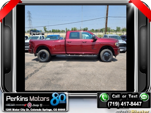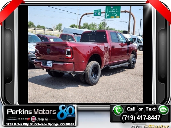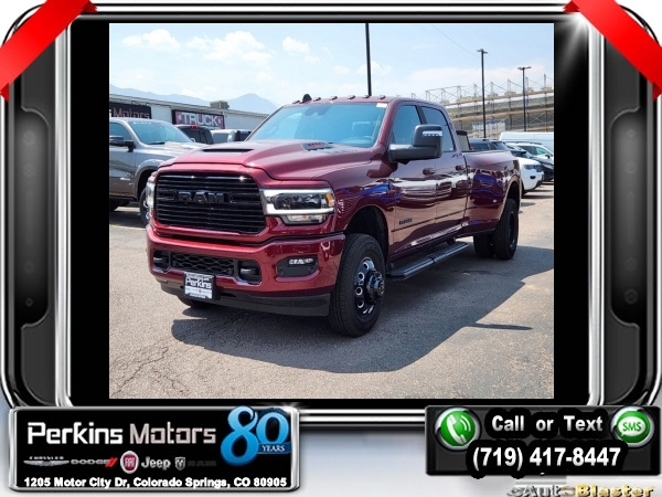 Factory MSRP: $95,140 $13,500 off MSRP! Delmonico Red Pearlcoat 2024 Ram 3500 Laramie 4WD Aisin 6-Speed Automatic Cummins 6.7L I6 Turbodiesel<br>115V Auxiliary Rear Power Outlet, 12 Touchscreen Display, 18 x 8 Polished Aluminum Wheels, 2nd Row In Floor Storage Bins, 4G LTE Wi-Fi Hot Spot, 5th Wheel/Gooseneck Towing Prep Group, ABS brakes, Alexa Built-In, Alloy wheels, Apple CarPlay, Auto Adjust In Reverse Exterior Mirrors, Auto Dimming Exterior Passenger Mirror, Auto High Beam Headlamp Control, Auto Power-Folding Mirrors, Auto-Dimming Exterior Mirrors, Black Exterior Truck Badging, Black Headlamp Bezels, Black Interior Accents, Black RAM Head Tailgate Badge, Black Tail Lamp Bezels, Black Wheel Center Hub, Blind Spot & Cross Path Detection, Body Color Grille Surround, Center Hub, Chrome Exterior Mirrors, Compass, Connected Travel & Traffic Services, Connectivity - US/Canada, CTR Stop Lamp w/Cargo View Camera, Disassociated Touchscreen Display, Electronic Stability Control, Exterior Mirrors Courtesy Lamps, Exterior Mirrors w/Heating Element, Exterior Mirrors w/Memory, Exterior Mirrors w/Supplemental Signals, Foam Bottle Insert (Door Trim Panel), Folding Flat Load Floor Storage, For Details Visit DriveUconnect.com, For More Info, Call 800-643-2112, Forward & Reverse Utility Lights, Front dual zone A/C, Front LED Fog Lamps, Full Length Upgraded Floor Console, Global Telematics Box Module (TBM), Gloss Black Grille Billets/Accents, Google Android Auto, GPS Antenna Input, GPS Navigation, HD Radio, Heated door mirrors, Heated Front Seats, Heated front seats, Heated Steering Wheel, Illuminated entry, Integrated Voice Command w/Bluetooth, Laramie Level 1 Equipment Group, Leather Trimmed Bucket Seats, LED Reflector Headlamps, LED Tail Lamps, Low tire pressure warning, Mirror Running Lights, Night Edition, Off-Road Information Pages, ParkSense Front/Rear Park Assist System, ParkView Rear Back-Up Camera, Power Adjust Mirrors, Power Adjustable Pedals w/Memory, Power Heat Fold Memory Telescopic Mirrors, Power Sunroof, Power Telescoping Mirrors, Power-Adjustable Convex Aux Mirrors, Radio: Uconnect 5 Nav w/12.0 Display, Rain Sensitive Windshield Wipers, Rear 60/40 Folding Seat, Rear Power Sliding Window, Rear Window Defroster, Remote keyless entry, Remote Tailgate Release, Selectable Tire Fill Alert, SiriusXM Radio Service, SiriusXM w/360L, Sport Performance Hood, Surround View Camera System, Towing Technology Group, Traction control, Trailer Reverse Guidance, Trailer Tow Pages.<br>Check us out at www.perkinsmotors.com to see our specials! Since opening our doors in 1944, we’ve been proud to serve Colorado Springs, CO, and the surrounding areas of Pueblo, Castle Rock and Denver, CO. Throughout this time of being family owned for 80 years, we’ve maintained a firm commitment to our customers: to offer a wide selection of New Chrysler, Dodge, Fiat, Jeep, and Ram vehicles and quality pre-owned vehicles, and provide a quick, no-hassle car-buying process that ensures everyone drives off the lot satisfied with their purchase.<br><br>Laramie Level 1 Equipment Group (12 Touchscreen Display, 18 x 8 Polished Aluminum Wheels, 2nd Row In Floor Storage Bins, 4G LTE Wi-Fi Hot Spot, Alexa Built-In, Apple CarPlay, Auto Adjust In Reverse Exterior Mirrors, Auto Dimming Exterior Passenger Mirror, Auto High Beam Headlamp Control, Auto Power-Folding Mirrors, Auto-Dimming Exterior Mirrors, Blind Spot & Cross Path Detection, Center Hub, Chrome Exterior Mirrors, Connected Travel & Traffic Services, Connectivity - US/Canada, Disassociated Touchscreen Display, Exterior Mirrors Courtesy Lamps, Exterior Mirrors w/Heating Element, Exterior Mirrors w/Memory, Exterior Mirrors w/Supplemental Signals, Foam Bottle Insert (Door Trim Panel), For Details Visit DriveUconnect.com, For More Info, Call Sale price includes all manufacture's incentives and dealer discounts. Sale price not available on lease or compatible with special APR. $1000 - 2024 Bonus Cash . Exp. 0