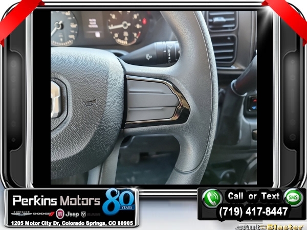 Factory MSRP: $53,705 $7,500 off MSRP! Priced below KBB Fair Purchase Price! Bright White Clearcoat 2024 Ram ProMaster 2500 High Roof FWD 9-Speed 948TE Automatic 3.6L V6 24V VVT<br><br>Check us out at www.perkinsmotors.com to see our specials! Since opening our doors in 1944, we’ve been proud to serve Colorado Springs, CO, and the surrounding areas of Pueblo, Castle Rock and Denver, CO. Throughout this time of being family owned for 80 years, we’ve maintained a firm commitment to our customers: to offer a wide selection of New Chrysler, Dodge, Fiat, Jeep, and Ram vehicles and quality pre-owned vehicles, and provide a quick, no-hassle car-buying process that ensures everyone drives off the lot satisfied with their purchase.<br><br>Quick Order Package 22B Tradesman w/Pass Seat (4-Way Manual Adjust Front Passenger Seat and Passenger Bucket Seat), 4 Speakers, 4-Wheel Disc Brakes, 4.08 Axle Ratio, ABS brakes, Air Conditioning, AM/FM radio: SiriusXM, Apple CarPlay/Android Auto, Black/Gray Seats, Bodyside moldings, Brake assist, Cloth Bucket Seats, Driver door bin, Driver Seat Armrest, Driver's Seat Mounted Armrest, Electronic Stability Control, Exterior Mirrors w/Supplemental Signals, Front anti-roll bar, Front Bucket Seats, Front License Plate Bracket, Front reading lights, Front wheel independent suspension, Heavy Duty Suspension, Illuminated entry, Low tire pressure warning, Manufacturer's Statement of Origin, MOPAR Cargo Area LED Lighting, Outside temperature display, Overhead airbag, Overhead console, ParkView Rear Back-Up Camera, Passenger door bin, Power steering, Power windows, Radio: Uconnect 5 w/7 Display, Remote keyless entry, Steering wheel mounted audio controls, Tachometer, Telescoping steering wheel, Traction control, Trip computer, Turn signal indicator mirrors, Variably intermittent wipers, Wheel Center Cap, and Wheels: 16 x 6.0 Steel.