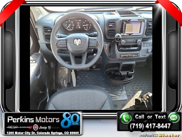 Factory MSRP: $53,705 $10,500 off MSRP! Priced below KBB Fair Purchase Price! Bright White Clearcoat 2024 Ram ProMaster 2500 High Roof FWD 9-Speed 948TE Automatic 3.6L V6 24V VVT<br><br>Check us out at www.perkinsmotors.com to see our specials! Since opening our doors in 1944, we’ve been proud to serve Colorado Springs, CO, and the surrounding areas of Pueblo, Castle Rock and Denver, CO. Throughout this time of being family owned for 80 years, we’ve maintained a firm commitment to our customers: to offer a wide selection of New Chrysler, Dodge, Fiat, Jeep, and Ram vehicles and quality pre-owned vehicles, and provide a quick, no-hassle car-buying process that ensures everyone drives off the lot satisfied with their purchase.<br><br>Quick Order Package 22B Tradesman w/Pass Seat (4-Way Manual Adjust Front Passenger Seat and Passenger Bucket Seat), 4 Speakers, 4-Wheel Disc Brakes, 4.08 Axle Ratio, ABS brakes, Air Conditioning, AM/FM radio: SiriusXM, Apple CarPlay/Android Auto, Black/Gray Seats, Bodyside moldings, Brake assist, Cloth Bucket Seats, Driver door bin, Driver Seat Armrest, Driver's Seat Mounted Armrest, Electronic Stability Control, Exterior Mirrors w/Supplemental Signals, Front anti-roll bar, Front Bucket Seats, Front License Plate Bracket, Front reading lights, Front wheel independent suspension, Heavy Duty Suspension, Illuminated entry, Low tire pressure warning, Manufacturer's Statement of Origin, MOPAR Cargo Area LED Lighting, Outside temperature display, Overhead airbag, Overhead console, ParkView Rear Back-Up Camera, Passenger door bin, Power steering, Power windows, Radio: Uconnect 5 w/7 Display, Remote keyless entry, Steering wheel mounted audio controls, Tachometer, Telescoping steering wheel, Traction control, Trip computer, Turn signal indicator mirrors, Variably intermittent wipers, Wheel Center Cap, and Wheels: 16 x 6.0 Steel. Sale price includes all manufacture's incentives and dealer discounts. Sale price not available on lease or compatible with special APR. $5000 - 2024 Bonus Cash . Exp. 10/31/2024 $500 - Exp. 01/02/2025