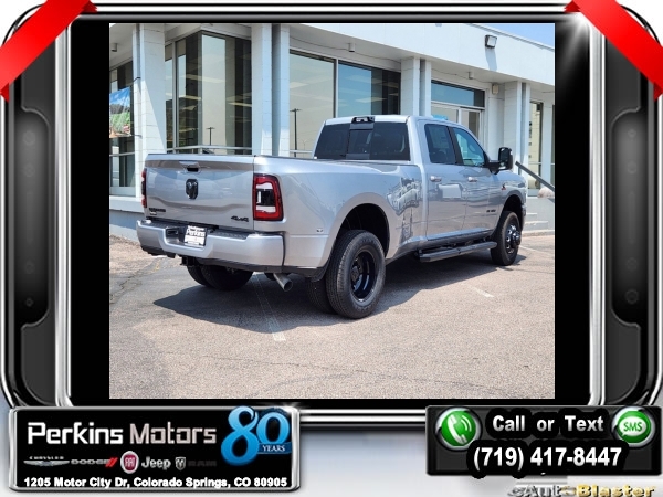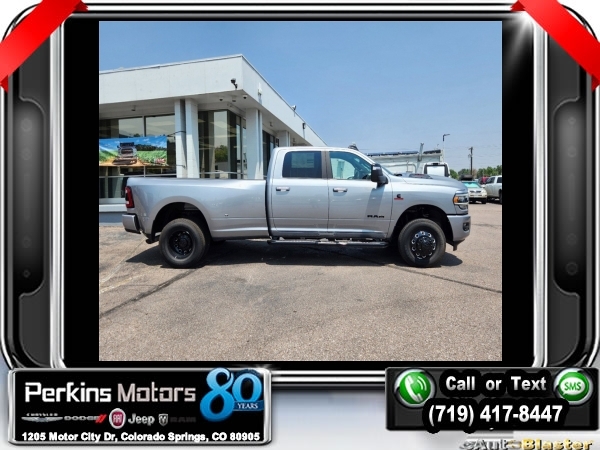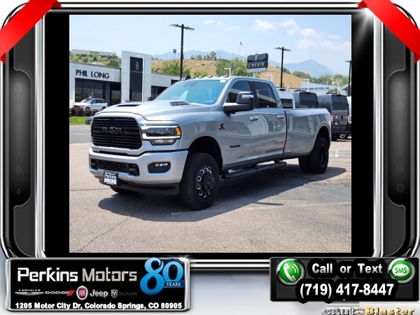 Factory MSRP: $95,190 $12,000 off MSRP! Billet Silver Metallic Clearcoat 2024 Ram 3500 Laramie 4WD Aisin 6-Speed Automatic Cummins 6.7L I6 Turbodiesel<br>115V Auxiliary Rear Power Outlet, 12 Touchscreen Display, 18 x 8 Polished Aluminum Wheels, 2nd Row In Floor Storage Bins, 4G LTE Wi-Fi Hot Spot, 5th Wheel/Gooseneck Towing Prep Group, ABS brakes, Alexa Built-In, Alloy wheels, Apple CarPlay, Auto Adjust In Reverse Exterior Mirrors, Auto Dimming Exterior Passenger Mirror, Auto High Beam Headlamp Control, Auto Power-Folding Mirrors, Auto-Dimming Exterior Mirrors, Black Exterior Truck Badging, Black Headlamp Bezels, Black Interior Accents, Black RAM Head Tailgate Badge, Black Tail Lamp Bezels, Black Wheel Center Hub, Blind Spot & Cross Path Detection, Body Color Grille Surround, Center Hub, Chrome Exterior Mirrors, Compass, Connected Travel & Traffic Services, Connectivity - US/Canada, CTR Stop Lamp w/Cargo View Camera, Disassociated Touchscreen Display, Electronic Stability Control, Exterior Mirrors Courtesy Lamps, Exterior Mirrors w/Heating Element, Exterior Mirrors w/Memory, Exterior Mirrors w/Supplemental Signals, Foam Bottle Insert (Door Trim Panel), Folding Flat Load Floor Storage, For Details Visit DriveUconnect.com, For More Info, Call 800-643-2112, Forward & Reverse Utility Lights, Front dual zone A/C, Front LED Fog Lamps, Front Seat Back Map Pockets, Full Length Upgraded Floor Console, Global Telematics Box Module (TBM), Gloss Black Grille Billets/Accents, Google Android Auto, GPS Antenna Input, GPS Navigation, HD Radio, Heated door mirrors, Heated Front Seats, Heated front seats, Heated Steering Wheel, Illuminated entry, Integrated Voice Command w/Bluetooth, Laramie Level 1 Equipment Group, Leather Trimmed Bucket Seats, LED Reflector Headlamps, LED Tail Lamps, Low tire pressure warning, Mirror Running Lights, Night Edition, Off-Road Information Pages, ParkSense Front/Rear Park Assist System, ParkView Rear Back-Up Camera, Power 2-Way Driver Lumbar Adjust, Power 2-Way Passenger Lumbar Adjust, Power 8-Way Adjustable Passenger Seat, Power Adjust 8-Way Driver Seat, Power Adjust Mirrors, Power Adjustable Pedals w/Memory, Power Heat Fold Memory Telescopic Mirrors, Power Sunroof, Power Telescoping Mirrors, Power-Adjustable Convex Aux Mirrors, Quick Order Package 21H Laramie, Radio: Uconnect 5 Nav w/12.0 Display, Rain Sensitive Windshield Wipers, Rear 60/40 Folding Seat, Rear Power Sliding Window, Rear Window Defroster, Remote keyless entry, Remote Tailgate Release, Selectable Tire Fill Alert, SiriusXM Radio Service, SiriusXM w/360L, Sport Performance Hood, Surround View Camera System, Towing Technology Group, Traction control, Trailer Reverse Guidance, Trailer Tow Pages.<br>Check us out at www.perkinsmotors.com to see our specials! Since opening our doors in 1944, we’ve been proud to serve Colorado Springs, CO, and the surrounding areas of Pueblo, Castle Rock and Denver, CO. Throughout this time of being family owned for 80 years, we’ve maintained a firm commitment to our customers: to offer a wide selection of New Chrysler, Dodge, Fiat, Jeep, and Ram vehicles and quality pre-owned vehicles, and provide a quick, no-hassle car-buying process that ensures everyone drives off the lot satisfied with their purchase.<br><br>Laramie Level 1 Equipment Group (12 Touchscreen Display, 18 x 8 Polished Aluminum Wheels, 2nd Row In Floor Storage Bins, 4G LTE Wi-Fi Hot Spot, Alexa Built-In, Apple CarPlay, Auto Adjust In Reverse Exterior Mirrors, Auto Dimming Exterior Passenger Mirror, Auto High Beam Headlamp Control, Auto Power-Folding Mirrors, Auto-Dimming Exterior Mirrors, Blind Spot & Cross Path Detection, Center Hub, Chrome Exterior Mirrors, Connected Travel & Traffic Services, Connectivity - US/Canada, Disassociated Touchscreen Disp Sale price includes all manufacture's incentives and dealer discounts. Sale price not available on lease or compatible with special APR. $1000 - 2024 Bonus Cash . Exp. 09/03/2024 $5,000 - Exp.