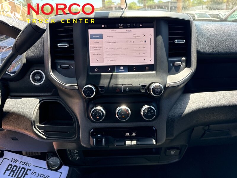 -- INSTALLED FEATURES: Air filtration, Front air conditioning, Front air conditioning zones: single, Rear vents: second row, Airbag deactivation: occupant sensing passenger, Front airbags: dual, Side airbags: front, Side curtain airbags: front / rear, Antenna type: mast, Auxiliary audio input: Bluetooth / USB / jack, Radio: AM/FM / touch screen display / voice operated, Radio data system, Speed sensitive volume control, Total speakers: 6, ABS: 4-wheel, Brake drying, Braking assist, Electronic brakeforce distribution, Emergency braking preparation, Front brake diameter: 14.2, Front brake type: ventilated disc, Front brake width: 1.54, Power brakes, Rear brake diameter: 14.1, Rear brake type: ventilated disc, Rear brake width: 1.34, Armrests: front center, Cargo area floor mat: rubber/vinyl, Door sill trim: scuff plate, Floor material: rubber/vinyl, Steering wheel trim: urethane, Assist handle: front / rear, Cruise control, Cupholders: front, One-touch windows: 2, Overhead console: front, Power outlet(s): 12V front / USB front, Power steering, Power windows: lockout button, Push-button start, Reading lights: front, Rearview mirror: manual day/night, Steering wheel: tilt, Steering wheel mounted controls: cruise control / multi-function / phone / voice control, Storage: accessory hook / door pockets / under rear seats, Vanity mirrors: passenger, 4WD selector: manual hi-lo, 4WD type: part time, Axle ratio: 3.73, Limited slip differential: rear, Alternator: 180 amps, Auxiliary oil cooler, Battery: maintenance-free, Battery rating: 730 CCA, Battery saver, Emissions: 50 state, Active grille shutters, Door handle color: black, Front bumper color: black, Grille color: black / black surround, Headlight bezel color: chrome, Mirror color: black, Pickup bed light: tailgate illumination, Rear bumper color: black, Tailgate: removable, Window trim: black, Infotainment: Uconnect, Infotainment screen size: 5 in., Clock, Compass, Digital odometer, External temperature display, Fuel economy display: MPG / range, Gauge: tachometer, Instrument cluster screen size: 3.5 in., Multi-function display, Powertrain hour meter, Trip odometer, Warnings and reminders: low fuel level / low oil level / maintenance due, Clearance lights, Daytime running lights, Headlights: auto delay off / auto on/off / halogen / quad headlights, Side mirror adjustments: manual folding / manual telescoping / power, Side mirrors: heated, Towing mirrors, Camera system: rearview, Child safety door locks, Child seat anchors: LATCH system, Crumple zones: front, Rearview monitor: in dash, Emergency locking retractors: front / rear, Front seatbelts: 3-point, Rear seatbelts: 3-point, Seatbelt force limiters: front, Seatbelt pretensioners: front, Seatbelt warning sensor: front, Driver seat manual adjustments: reclining / 4, Front headrests: adjustable / 2, Front seat type: 40-20-40 split bench, Passenger seat manual adjustments: reclining / 4, Rear headrests: adjustable / 3, Rear seat folding: folds up, Rear seat type: bench, Upholstery: vinyl, Anti-theft system: vehicle immobilizer, Power door locks: auto-locking, Hill holder control, Roll stability control, Stability control, Traction control, Trailer stability control, Front shock type: gas, Front spring type: coil, Front stabilizer bar, Front suspension classification: solid live axle, Front suspension type: multi-link, Rear shock type: gas, Rear spring type: leaf, Rear suspension classification: solid live axle, Rear suspension type: multi-leaf, Suspension control: frequency selective, Electronic messaging assistance: voice operated / with read function, Hands-free phone call integration: voice operated, Wireless data link: Bluetooth, Dual rear wheels, Spare tire mount location: underbody, Spare tire size: full-size, Spare wheel type: steel, Tire Pressure Monitoring System, Tire type: all season, Wheels: steel, Auxiliary transmission fluid cooler, Pickup bed cargo management: tie-down anchors, Tow hooks: front, Trailer hitch: Class V, Trailer wiring: 4-pin / 7-pin, Front wipers: variable intermittent, Power windows: safety reverse, Rear privacy glass, Solar-tinted glass