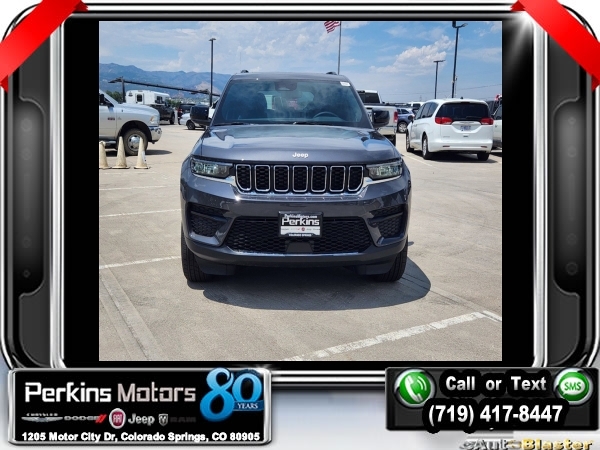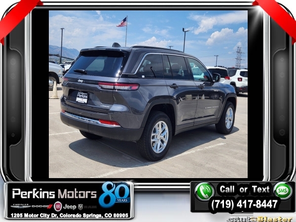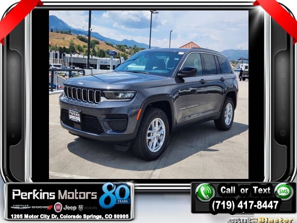 Factory MSRP: $44,970 $8,000 off MSRP! Priced below KBB Fair Purchase Price! Baltic Gray Metallic Clearcoat 2024 Jeep Grand Cherokee Laredo 4WD 8-Speed Automatic 3.6L V6 24V VVT<br>4WD.<br>Check us out at www.perkinsmotors.com to see our specials! Since opening our doors in 1944, we’ve been proud to serve Colorado Springs, CO, and the surrounding areas of Pueblo, Castle Rock and Denver, CO. Throughout this time of being family owned for 80 years, we’ve maintained a firm commitment to our customers: to offer a wide selection of New Chrysler, Dodge, Fiat, Jeep, and Ram vehicles and quality pre-owned vehicles, and provide a quick, no-hassle car-buying process that ensures everyone drives off the lot satisfied with their purchase.<br><br>Luxury Tech Group I (Heated Front Seats and Remote Start System), Quick Order Package 23D Laredo X (Power Sunroof), 4WD, 3.45 Rear Axle Ratio, 4-Wheel Disc Brakes, 6 Speakers, ABS brakes, Air Conditioning, Alloy wheels, Anti-whiplash front head restraints, Automatic temperature control, Brake assist, Bumpers: body-color, Cloth Seats, Compass, Cruise Control, Delay-off headlights, Driver door bin, Driver vanity mirror, Dual front impact airbags, Dual front side impact airbags, Electronic Stability Control, Emergency communication system, Four wheel independent suspension, Front anti-roll bar, Front Bucket Seats, Front Center Armrest w/Storage, Front dual zone A/C, Front License Plate Bracket, Front reading lights, Fully automatic headlights, Heated door mirrors, Illuminated entry, Knee airbag, Low tire pressure warning, Normal Duty Suspension, Occupant sensing airbag, Outside temperature display, Overhead airbag, Overhead console, Panic alarm, ParkView Rear Back-Up Camera, Passenger door bin, Passenger vanity mirror, Power door mirrors, Power driver seat, Power steering, Power windows, Radio data system, Radio: Uconnect 5 w/8.4 Display, Rear anti-roll bar, Rear reading lights, Rear window defroster, Rear window wiper, Remote keyless entry, Roof rack: rails only, Security system, Speed-Sensitive Wipers, Split folding rear seat, Spoiler, Steering wheel mounted audio controls, Tachometer, Telescoping steering wheel, Tilt steering wheel, Traction control, Trip computer, Variably intermittent wipers, Voltmeter, and Wheels: 17 x 6.5 Fully Painted Aluminum.<br><br>19/26 City/Highway MPG Sale price includes all manufacture's incentives and dealer discounts. Sale price not available on lease or compatible with special APR. $1000 - 2024 Denver BC Retail Consumer Cash. Exp. 09/03/2024 $1500 - 2024 Retail Bonus Cash. Exp. 09/03/2024 $2,000 - Exp. 09/03/2024