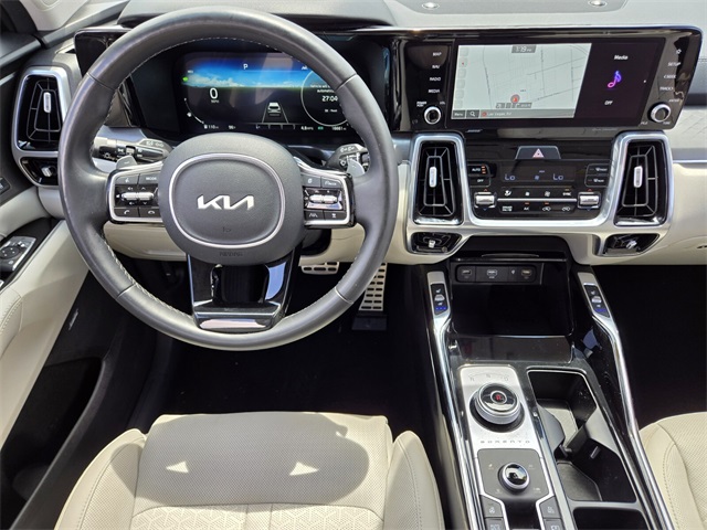 Priced below KBB Fair Purchase Price!Aurora Black 2023 Kia Sorento Plug-In Hybrid SX Prestige AWD 6-Speed Automatic 1.6L I4 DGI Hybrid Turbocharged DOHC 16V LEV3-ULEV70 1.6L I4 DGI Hybrid Turbocharged DOHC 16V LEV3-ULEV70.If you don't drive here, you can't save here!Price may not include recon fee. 1.6L I4 DGI Hybrid Turbocharged DOHC 16V LEV3-ULEV70, 12 Speakers, 3rd row seats: split-bench, 4-Wheel Disc Brakes, ABS brakes, Air Conditioning, Alloy wheels, AM/FM radio: SiriusXM, Apple CarPlay & Android Auto, Auto High-beam Headlights, Auto-dimming Rear-View mirror, Automatic temperature control, Axle Ratio: 3.648, Brake assist, Bumpers: body-color, Carpet Floor Mats, Delay-off headlights, Driver door bin, Driver vanity mirror, Dual front impact airbags, Dual front side impact airbags, Electronic Stability Control, Emergency communication system, Four wheel independent suspension, Front anti-roll bar, Front Bucket Seats, Front Center Armrest, Front dual zone A/C, Front fog lights, Front reading lights, Fully automatic headlights, Garage door transmitter: HomeLink, Genuine Perforated Leather Seat Trim, Heated & Ventilated Front Bucket Seats, Heated door mirrors, Heated front seats, Heated rear seats, Heated steering wheel, Illuminated entry, Knee airbag, Leather steering wheel, Low tire pressure warning, Memory seat, Navigation System, Occupant sensing airbag, Outside temperature display, Overhead airbag, Overhead console, Panic alarm, Passenger door bin, Passenger vanity mirror, Power door mirrors, Power driver seat, Power Liftgate, Power passenger seat, Power steering, Power windows, Radio data system, Radio: AM/FM/HD Radio/SiriusXM Audio System, Rain sensing wipers, Rear air conditioning, Rear anti-roll bar, Rear reading lights, Rear window defroster, Rear window wiper, Remote keyless entry, Roof rack: rails only, Security system, Smart Key w/ Push Button and Remote Start, Speed control, Speed-sensing steering, Split folding rear seat, Spoiler, Steering wheel mounted audio controls, Tachometer, Telescoping steering wheel, Tilt steering wheel, Traction control, Trip computer, Turn signal indicator mirrors, Variably intermittent wipers, Ventilated front seats, and Wheels: 19" Machine-Finished Alloy.