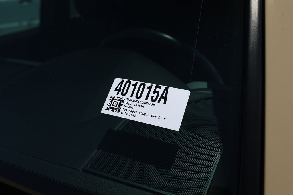 Quicksand 2018 Toyota Tacoma TRD Sport V6 4WD 6-Speed Automatic 3.5L V6 PDI DOHC 24V LEV3-ULEV70 278hp 4WD, 120V/400W Deck Mounted AC Power, 6 Speakers, Air Conditioning, Brake assist, Color Keyed Rear Bumper, Electronic Stability Control, Engine Immobilizer, Entune App Suite, Exterior Parking Camera Rear, LED Daytime Running Lamps, Navigation System, Radio: Entune Premium w/AM/FM/CD/Nav/App Suite, Smart Key w/Push Button Start, TRD Sport Package, Wheels: 17" x 7.5" Machined Alloy, Wide Angle Front Fog Lamps.Recent Arrival! Odometer is 3318 miles below market average!Awards: * 2018 KBB.com 5-Year Cost to Own Awards * 2018 KBB.com Best Resale Value Awards * 2018 KBB.com 10 Most Awarded Brands