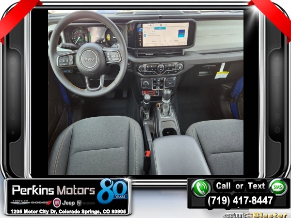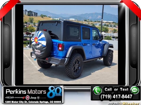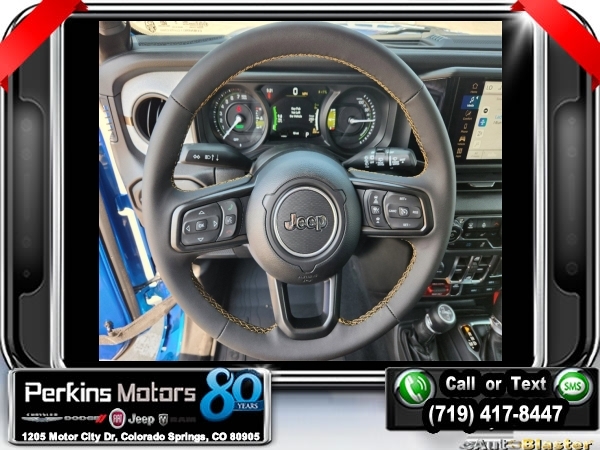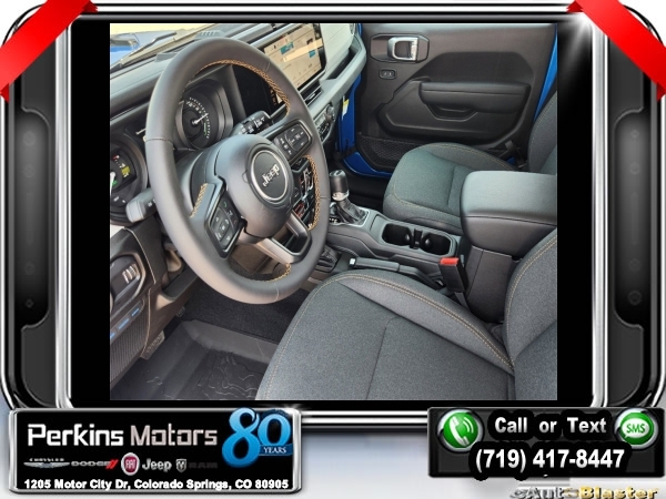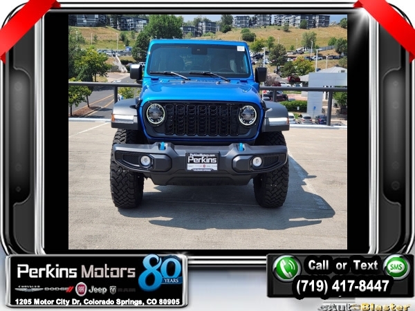 Factory MSRP: $61,615 $14,750 off MSRP! Hydro Blue Pearl Coat 2024 Jeep Wrangler Willys 4xe 4WD 8-Speed Automatic 2.0L I4 DOHC<br>2.0L I4 DOHC.<br>Check us out at www.perkinsmotors.com to see our specials! Since opening our doors in 1944, we’ve been proud to serve Colorado Springs, CO, and the surrounding areas of Pueblo, Castle Rock and Denver, CO. Throughout this time of being family owned for 80 years, we’ve maintained a firm commitment to our customers: to offer a wide selection of New Chrysler, Dodge, Fiat, Jeep, and Ram vehicles and quality pre-owned vehicles, and provide a quick, no-hassle car-buying process that ensures everyone drives off the lot satisfied with their purchase.<br><br>Convenience Group (2-Door Passive Entry, Front Door Locks and Universal Garage Door Opener), Quick Order Package 29W Willys (7 & 4 Pin Wiring Harness, Black Grille, Conventional Differential Front Axle, and Wheels: 17 x 7.5 Painted Black), 2.0L I4 DOHC, 3.73 Rear Axle Ratio, 4-Wheel Disc Brakes, 8 Speakers, ABS brakes, Air Conditioning, Alloy wheels, Apple CarPlay/Android Auto, Automatic temperature control, Black 3-Piece Hard Top, Brake assist, Cloth Low-Back Bucket Seats, Compass, Cruise Control, Delay-off headlights, Driver door bin, Driver vanity mirror, Dual front impact airbags, Dual front side impact airbags, Electronic Stability Control, Front anti-roll bar, Front Bucket Seats, Front Center Armrest w/Storage, Front dual zone A/C, Front fog lights, Front License Plate Bracket, Front reading lights, Fully automatic headlights, Heated door mirrors, Illuminated entry, Integrated roll-over protection, Low tire pressure warning, Occupant sensing airbag, Outside temperature display, Overhead airbag, Panic alarm, ParkView Rear Back-Up Camera, Passenger door bin, Passenger vanity mirror, Power door mirrors, Power steering, Power windows, Radio data system, Radio: Uconnect 5 w/12.3 Display, Rear anti-roll bar, Rear reading lights, Remote keyless entry, Security system, Split folding rear seat, Sport Suspension, Steering wheel mounted audio controls, Tachometer, Telescoping steering wheel, Tilt steering wheel, Traction control, Trip computer, Variably intermittent wipers, Voltmeter, and Wheels: 20 x 8 Machined/Painted Gray. Sale price includes all manufacture's incentives and dealer discounts. Sale price not available on lease or compatible with special APR. $3750 - Federal EV Tax Credit. Exp. 12/31/2024