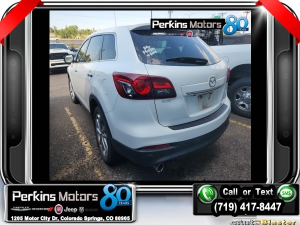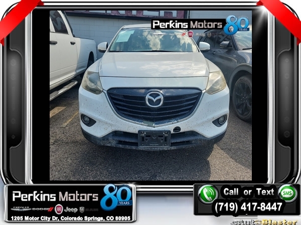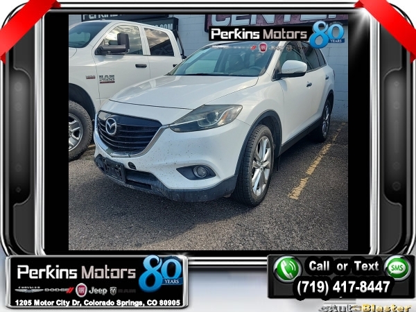 -Select- AWD 3.7L V6 DOHC 24V 6-Speed Sport Automatic<br><br>AWD.<br><br><br>Clean CARFAX.<br><br>Check us out at www.perkinsmotors.com to see our specials! Since opening our doors in 1944, we’ve been proud to serve Colorado Springs, CO, and the surrounding areas of Pueblo, Castle Rock and Denver, CO. Throughout this time of being family owned for 80 years, we’ve maintained a firm commitment to our customers: to offer a wide selection of New Chrysler, Dodge, Fiat, Jeep, and Ram vehicles and quality pre-owned vehicles, and provide a quick, no-hassle car-buying process that ensures everyone drives off the lot satisfied with their purchase.<br><br>Reviews:<br> * If you need a vehicle that can haul a family, but your heart still yearns for a car that’s fun to drive, the Mazda CX-9 will give you the best of both worlds. Source: KBB.com<br> * Sporty performance; stylish cabin; easy access to spacious third row; solid build quality. Source: Edmunds<br><br><br>Awards:<br> * 2013 KBB.com 5-Year Cost to Own Awards<br><br>AWD, 20 x 7.5J Aluminum Alloy Wheels, 3.464 Axle Ratio, 3rd row seats: split-bench, 4-Wheel Disc Brakes, 6 Speakers, ABS brakes, Air Conditioning, Alloy wheels, AM/FM radio, AM/FM Sound System w/CD & 6 Speakers, Anti-whiplash front head restraints, Auto-dimming Rear-View mirror, Automatic temperature control, Brake assist, Bumpers: body-color, CD player, Cruise Control, Delay-off headlights, Driver door bin, Driver vanity mirror, Dual front impact airbags, Dual front side impact airbags, Electronic Stability Control, Exterior Parking Camera Rear, Four wheel independent suspension, Front anti-roll bar, Front Bucket Seats, Front Center Armrest, Front dual zone A/C, Front fog lights, Front reading lights, Fully automatic headlights, Garage door transmitter: HomeLink, Heated door mirrors, Heated Front Bucket Seats, Heated front seats, High intensity discharge headlights: Bi-Xenon, Illuminated entry, Leather Shift Knob, Leather Trimmed Seats, Low tire pressure warning, Memory seat, Occupant sensing airbag, Outside temperature display, Overhead airbag, Overhead console, Panic alarm, Passenger door bin, Passenger vanity mirror, Power door mirrors, Power driver seat, Power Liftgate, Power passenger seat, Power steering, Power windows, Rain sensing wipers, Rear air conditioning, Rear anti-roll bar, Rear Parking Sensors, Rear seat center armrest, Rear window defroster, Rear window wiper, Remote keyless entry, Security system, Speed-sensing steering, Split folding rear seat, Spoiler, Steering wheel mounted audio controls, Tachometer, Telescoping steering wheel, Tilt steering wheel, Traction control, Trip computer, Turn signal indicator mirrors, and Variably intermittent wipers.