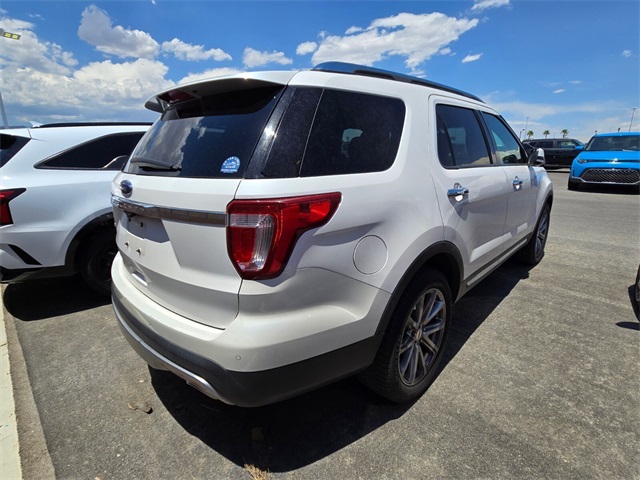 White 2017 Ford Explorer Limited FWD 6-Speed Automatic with Select-Shift 3.5L 6-Cylinder SMPI Turbocharged DOHCIf you don't drive here, you can't save here!Awards: * 2017 KBB.com Brand Image Awards * 2017 KBB.com 10 Most Awarded BrandsPrice may not include recon fee. 12 Speakers, 20" Premium Painted Aluminum Wheels, 3.39 Non-Limited-Slip Axle Ratio, 3rd row seats: split-bench, 4-Wheel Disc Brakes, ABS brakes, Adjustable pedals, Air Conditioning, Alloy wheels, AM/FM radio: SiriusXM, Auto tilt-away steering wheel, Auto-dimming Rear-View mirror, Automatic temperature control, Brake assist, Bumpers: body-color, CD player, Compass, Delay-off headlights, Driver door bin, Driver vanity mirror, Dual front impact airbags, Dual front side impact airbags, Electronic Stability Control, Emergency communication system: SYNC 3 911 Assist, Exterior Parking Camera Rear, Four wheel independent suspension, Front anti-roll bar, Front Bucket Seats, Front Center Armrest, Front dual zone A/C, Front fog lights, Front reading lights, Fully automatic headlights, Garage door transmitter, Heated door mirrors, Heated front seats, Heated rear seats, Heated steering wheel, Illuminated entry, Knee airbag, Leather steering wheel, Low tire pressure warning, Memory seat, Navigation System, Occupant sensing airbag, Outside temperature display, Overhead airbag, Overhead console, Panic alarm, Passenger door bin, Passenger vanity mirror, Pedal memory, Perforated Leather Heated/Cooled Bucket Seats, Power door mirrors, Power driver seat, Power Liftgate, Power passenger seat, Power steering, Power windows, Premium audio system: Sony, Radio data system, Radio: Sony Audio System w/Single-CD/MP3-Capable, Rear air conditioning, Rear anti-roll bar, Rear reading lights, Rear seat center armrest, Rear window defroster, Rear window wiper, Remote keyless entry, Roof rack: rails only, Security system, Speed control, Speed-sensing steering, Speed-Sensitive Wipers, Split folding rear seat, Spoiler, Steering wheel memory, Steering wheel mounted audio controls, SYNC 3 Communications & Entertainment System, Tachometer, Telescoping steering wheel, Tilt steering wheel, Traction control, Trip computer, Turn signal indicator mirrors, Variably intermittent wipers, and Ventilated front seats.