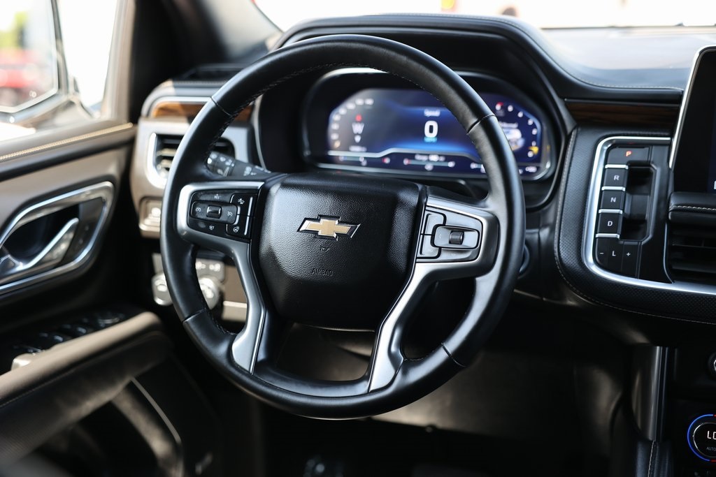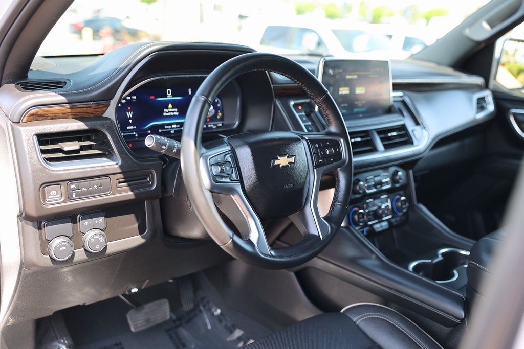Priced below KBB Fair Purchase Price!Tahoe Premier, 4D Sport Utility, EcoTec3 5.3L V8, 10-Speed Automatic with Overdrive, RWD, Jet Black Leather, 10 Speakers, 1st & 2nd Row Color-Keyed Carpeted Floor Mats, 20" x 9" Polished Aluminum Wheels, 3rd Row 60/40 Power-Folding Split-Bench Seat, 3rd row seats: split-bench, Alloy wheels, Apple CarPlay/Android Auto, Bose 10-Speaker Centerpoint Surround Audio Sys Ft, Compass, Front dual zone A/C, Heated & Ventilated Driver & Front Passenger Seats, Heated 2nd Row Outboard Seats, Heated front seats, Heated rear seats, Low tire pressure warning, Memory seat, Navigation System, Overhead airbag, Power Liftgate, Premium audio system: Chevrolet Infotainment 3 Premium, Radio: Chevrolet Infotainment 3 Premium System, Spoiler, Universal Home Remote.Clean CARFAX.CARFAX One-Owner.