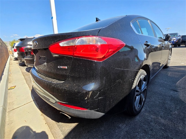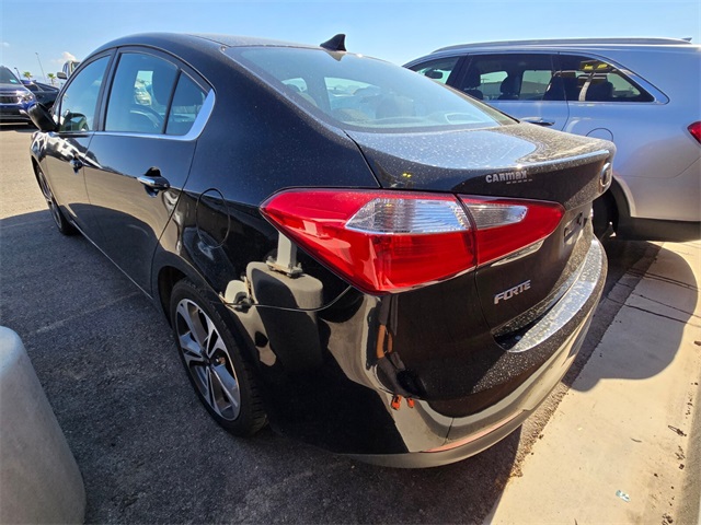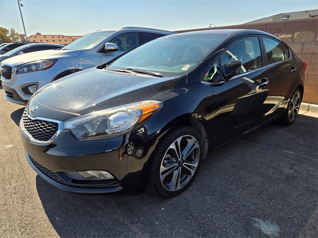 Recent Arrival!Odometer is 24558 miles below market average!24/36 City/Highway MPGAurora Black 2014 Kia Forte EX FWD 6-Speed Automatic 2.0L I4 DOHC Dual CVVTIf you don't drive here, you can't save here!Awards: * 2014 KBB.com 10 Best Sedans Under $25,000 * 2014 KBB.com 10 Tech-Savviest Cars Under $20,000 * 2014 KBB.com 10 Best Used Compact Cars Under $10,000 * 2014 KBB.com Brand Image AwardsPrice may not include recon fee. 4-Wheel Disc Brakes, 6 Speakers, 6.5J x 16" Alloy Wheels, 7.0J x 17" Alloy Wheels, ABS brakes, Air Conditioning, Alloy wheels, AM/FM radio: SiriusXM, Brake assist, Bumpers: body-color, Carpeted Floor Mats, CD player, Cloth Seat Trim, Delay-off headlights, Driver door bin, Driver vanity mirror, Dual front impact airbags, Dual front side impact airbags, Electronic Stability Control, Exterior Parking Camera Rear, Front anti-roll bar, Front Bucket Seats, Front Center Armrest, Front fog lights, Front reading lights, Front wheel independent suspension, Fully automatic headlights, Heated door mirrors, Illuminated entry, Leather Shift Knob, Leather steering wheel, Low tire pressure warning, Occupant sensing airbag, Outside temperature display, Overhead airbag, Overhead console, Panic alarm, Passenger door bin, Passenger vanity mirror, Power door mirrors, Power steering, Power windows, Radio: AM/FM/CD/MP3 Audio Unit, Rear Bumper Applique, Rear seat center armrest, Rear window defroster, Remote keyless entry, Speed control, Speed-sensing steering, Split folding rear seat, Steering wheel mounted audio controls, Tachometer, Telescoping steering wheel, Tilt steering wheel, Traction control, Trip computer, Turn signal indicator mirrors, and Variably intermittent wipers.