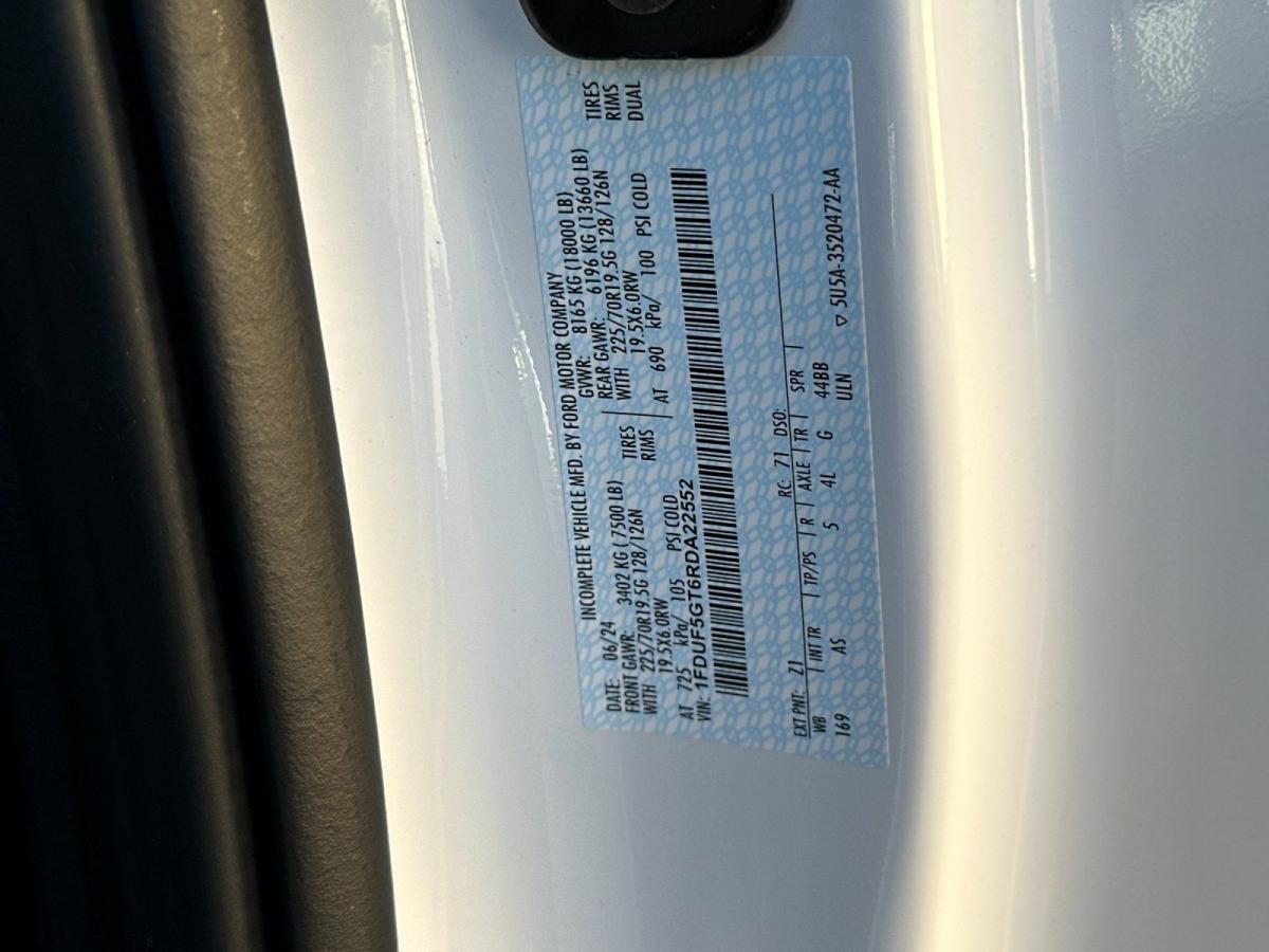 Elevate your driving experience with this exceptional 2024 Ford F-550SD XL DRW. Boasting a powerful 6.7L V8 Diesel Turbocharged (Power Stroke) engine and a robust 10-Speed Automatic transmission, this truck is engineered to tackle the toughest jobs with ease. Finished in a sleek White exterior, this F-550SD is a true workhorse that combines strength and style.• 6.7L V8 Diesel Turbocharged (Power Stroke) with Operator Commanded Regeneration (OCR), Diesel Exhaust Fluid (DEF) Tank, Intelligent Oil-Life Monitor, Manual Push-Button Engine-Exhaust Braking, and 4.10 Axle Ratio• Rear View Camera & Prep Kit with pre-installed cab and frame wiring, and a camera with mounting bracket• Limited Slip with 4.30 Axle Ratio• Extra Heavy-Duty Front End Suspension with 7,500 lbs GAWR• XL Chrome Package featuring Halogen Fog Lamps, Bright Grille, Remote Start, and Chrome Front Bumper• Dual 68 AH/65 AGM BatteriesThis F-550SD is built to handle the most demanding tasks, with a Gross Vehicle Weight Rating (GVWR) of 18,000 lbs and a robust Payload Package. The SYNC 4 Communications & Entertainment System, Remote Keyless Entry, Traction Control, and ABS Brakes are just a few of the impressive features that come standard.Whether you're hauling heavy equipment, towing a large trailer, or navigating challenging terrain, this F-550SD is up to the task. The combination of its powerful diesel engine, advanced features, and rugged construction make it a true workhorse that will exceed your expectations.Experience the uncompromising capability and versatility of the 2024 Ford F-550SD XL DRW. Visit our showroom today and let our knowledgeable sales team demonstrate how this exceptional truck can transform the way you work.