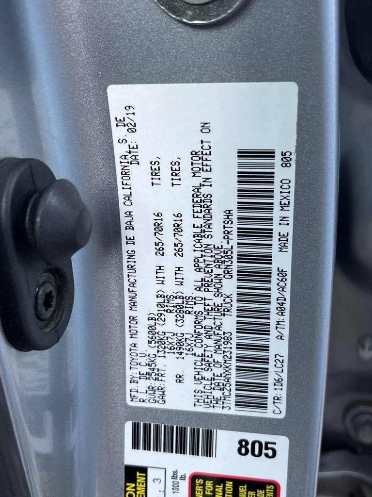 Tacoma TRD Offroad V6, 4D Double Cab, 3.5L V6 PDI DOHC 24V LEV3-ULEV70 278hp, 6-Speed Automatic, 4WD, 120V/400W Deck Mounted AC Power, Auto-Dimming Inside Rear-View Mirror w/Compass, Automatic Headlights, Black Overfenders, Blind Spot Monitor w/Rear Cross Traffic Alert, CD player, Color Keyed Rear Bumper, Dual Zone Automatic Climate Control, Engine Immobilizer, Entune App Suite, Heated Front Seats, Leather Seat Trim, LED Daytime Running Lamps, Navigation System, Power Sliding Rear Window w/Privacy Glass, Power Tilt/Slide Moonroof, Radio: Entune Premium JBL AM/FM/CD w/Nav & App Ste, Rear Parking Assist Sonar, Smart Key w/Push Button Start, Technology Package, TRD Premium Off Road Package (OF), Variable Intermittent Wipers, Wide Angle Front Fog Lamps.Awards: * 2019 KBB.com Best Resale Value Awards * 2019 KBB.com Brand Image Awards