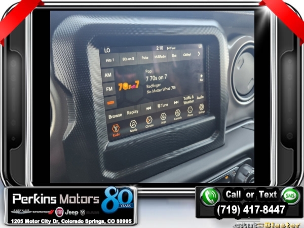 Black Clearcoat 4WD 2.0L I4 DOHC 8-Speed Automatic<br><br>7.0 Touchscreen Display, Air Conditioning w/Auto Temperature Control, Air Filtering, Apple CarPlay, Automatic Headlamps, Cluster 7.0 TFT Color Display, Cold Weather Group, Convenience Group, Deep Tint Sunscreen Windows, Front 1-Touch Down Power Windows, Google Android Auto, GPS Antenna Input, Heated Front Seats, Heated Steering Wheel, Integrated Center Stack Radio, Leather Wrapped Steering Wheel, Power Heated Mirrors, Quick Order Package 22S Sport S, Radio: Uconnect 4 w/7 Display, Remote Keyless Entry, Security Alarm, Selectable Tire Fill Alert, SiriusXM Satellite Radio, Speed Sensitive Power Locks, Sport S, Sun Visors w/Illuminated Vanity Mirrors, Technology Group, Technology Group (DISC), Universal Garage Door Opener, USB Host Flip, Wheels: 17 x 7.5 Tech Silver Aluminum.<br><br>Certified. FCA US LLC Certified Pre-Owned Details:<br><br> * Includes First Day Rental, Car Rental Allowance, and Trip Interruption Benefits. SiriusXM 3 month trial subscription<br> * Transferable Warranty<br> * Powertrain Limited Warranty: 84 Month/100,000 Mile (whichever comes first) from original in-service date<br> * Vehicle History<br> * Warranty Deductible: $100<br> * Limited Warranty: 3 Month/3,000 Mile (whichever comes first) after new car warranty expires or from certified purchase date<br> * 125 Point Inspection<br> * Roadside Assistance<br><br><br>CARFAX One-Owner. Clean CARFAX.<br><br>Check us out at www.perkinsmotors.com to see our specials! Since opening our doors in 1944, we’ve been proud to serve Colorado Springs, CO, and the surrounding areas of Pueblo, Castle Rock and Denver, CO. Throughout this time of being family owned for 80 years, we’ve maintained a firm commitment to our customers: to offer a wide selection of New Chrysler, Dodge, Fiat, Jeep, and Ram vehicles and quality pre-owned vehicles, and provide a quick, no-hassle car-buying process that ensures everyone drives off the lot satisfied with their purchase.<br><br><br>Cold Weather Group (Heated Front Seats and Heated Steering Wheel), Convenience Group (Universal Garage Door Opener), Quick Order Package 22S Sport S (Automatic Headlamps, Deep Tint Sunscreen Windows, Front 1-Touch Down Power Windows, Leather Wrapped Steering Wheel, Power Heated Mirrors, Remote Keyless Entry, Security Alarm, Speed Sensitive Power Locks, Sport S, Sun Visors w/Illuminated Vanity Mirrors, and Wheels: 17 x 7.5 Tech Silver Aluminum), Technology Group (7.0 Touchscreen Display, Air Conditioning w/Auto Temperature Control, Air Filtering, Apple CarPlay, Cluster 7.0 TFT Color Display, Google Android Auto, GPS Antenna Input, Integrated Center Stack Radio, Radio: Uconnect 4 w/7 Display, SiriusXM Satellite Radio, and USB Host Flip), Technology Group (DISC) (Selectable Tire Fill Alert), FCA US LLC Certified Pre-Owned Certified, 3.45 Rear Axle Ratio, 4-Wheel Disc Brakes, 8 Speakers, ABS brakes, Air Conditioning, AM/FM radio, Aux Battery, Brake assist, Cloth Low-Back Bucket Seats, Compass, Cruise Control, Delay-off headlights, Driver door bin, Driver vanity mirror, Dual front impact airbags, Dual front side impact airbags, Electronic Stability Control, Front anti-roll bar, Front Bucket Seats, Front Center Armrest w/Storage, Front fog lights, Front reading lights, Integrated roll-over protection, Low tire pressure warning, MOPAR All-Weather Floor Mats, MOPAR All-Weather Floor Mats (DISC), Non-Lock Fuel Cap w/o Discriminator, Normal Duty Suspension, Occupant sensing airbag, Outside temperature display, ParkView Rear Back-Up Camera, Passenger door bin, Passenger vanity mirror, Power steering, Radio data system, Radio: Uconnect 3 w/5 Display, Rear anti-roll bar, Rear reading lights, Split folding rear seat, Steering wheel mounted audio controls, Stop-Start Dual Battery System, Tachometer, Telescoping steering wheel, Tilt steering wheel, Traction control, Trip computer, Variably intermittent wipers, Wheels: 17 x 7.5 Black Steel Styled