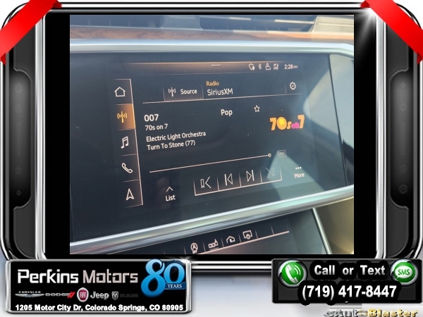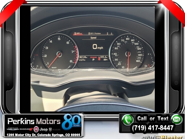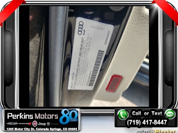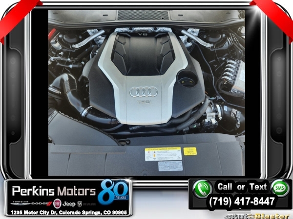 Black Metallic quattro 3.0L V6 Turbocharged DOHC 24V LEV3-ULEV70 335hp 7-Speed Automatic<br><br>quattro, Leather, ABS brakes, Alloy wheels, Compass, Electronic Stability Control, Front dual zone A/C, Heated door mirrors, Heated Front Seats, Heated front seats, Illuminated entry, Low tire pressure warning, Power moonroof, Remote keyless entry, Traction control.<br><br><br>CARFAX One-Owner. Clean CARFAX.<br><br>Check us out at www.perkinsmotors.com to see our specials! Since opening our doors in 1944, we’ve been proud to serve Colorado Springs, CO, and the surrounding areas of Pueblo, Castle Rock and Denver, CO. Throughout this time of being family owned for 80 years, we’ve maintained a firm commitment to our customers: to offer a wide selection of New Chrysler, Dodge, Fiat, Jeep, and Ram vehicles and quality pre-owned vehicles, and provide a quick, no-hassle car-buying process that ensures everyone drives off the lot satisfied with their purchase.<br><br><br>Quattro, Leather, ABS brakes, Alloy wheels, Compass, Electronic Stability Control, Front dual zone A/C, Heated door mirrors, Heated Front Seats, Heated front seats, Illuminated entry, Low tire pressure warning, Power moonroof, Remote keyless entry, Traction control, 10 Speakers, 4-Wheel Disc Brakes, Air Conditioning, AM/FM radio: SiriusXM, Audi smartphone interface (Apple CarPlay/Android Auto), Auto tilt-away steering wheel, Auto-dimming door mirrors, Auto-dimming Rear-View mirror, Automatic temperature control, Brake assist, Bumpers: body-color, Cruise Control, Delay-off headlights, Driver door bin, Driver vanity mirror, Dual front impact airbags, Dual front side impact airbags, Emergency communication system: Audi connect CARE, Exterior Parking Camera Rear, Four wheel independent suspension, Front anti-roll bar, Front Bucket Seats, Front Center Armrest, Front fog lights, Front reading lights, Garage door transmitter: HomeLink, Genuine wood console insert, Genuine wood dashboard insert, Genuine wood door panel insert, Knee airbag, Leather Seating Surfaces, Leather Shift Knob, Memory seat, Occupant sensing airbag, Outside temperature display, Overhead airbag, Overhead console, Panic alarm, Passenger door bin, Passenger vanity mirror, Power door mirrors, Power driver seat, Power passenger seat, Power steering, Power windows, Radio data system, Radio: Audi MMI Navigation w/MMI Touch Response, Rain sensing wipers, Rear air conditioning, Rear anti-roll bar, Rear reading lights, Rear seat center armrest, Rear window defroster, Security system, Speed-sensing steering, Speed-Sensitive Wipers, Split folding rear seat, Steering wheel memory, Steering wheel mounted audio controls, Tachometer, Telescoping steering wheel, Tilt steering wheel, Trip computer, Turn signal indicator mirrors, Variably intermittent wipers, and Wheels: 19 5-Double-Spoke Bi-Color.