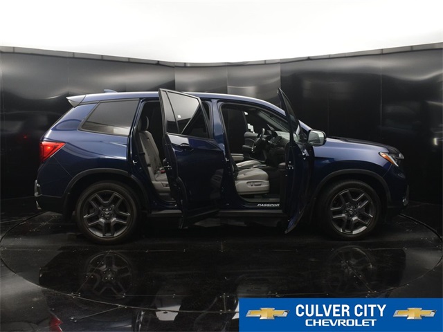 Recent Arrival! This 2022 Honda Passport EX-L is a refined and versatile midsize SUV that excels in both comfort and practicality. Powered by a robust 3.5-liter V6 engine delivering 280 horsepower, the Passport EX-L offers smooth and responsive performance. Its spacious interior comfortably accommodates up to five passengers, with high-quality materials and a thoughtful design. The EX-L trim includes leather-trimmed seats, a power-adjustable driver's seat, and a one-touch power moonroof. The advanced infotainment system features an 8-inch touchscreen with Apple CarPlay and Android Auto compatibility, ensuring seamless connectivity. Standard safety features include the Honda Sensing suite of driver assistance technologies, such as adaptive cruise control, collision mitigation braking, and lane-keeping assist. With ample cargo space, a smooth ride, and a suite of modern features, this 2022 Honda Passport EX-L is an ideal choice for those seeking a dependable and comfortable SUV for everyday adventures.At Culver City Chevrolet, our entire team works together to provide you with the ultimate Chevrolet shopping experience. We are family owned and operated, so we treat you just like you are part of our family. We are also very passionate about serving the community in which we work, live and play! From the Little League teams we support, to the next customer that walks in the door, we are committed to doing the right thing. Our goal is to exceed your expectations, deliver the best service possible, and make car shopping fun again. We offer a large inventory of Chevrolet cars, trucks, SUVs and electric vehicles, and an incredible lineup of luxury vehicles for sale as well! Just find the specific vehicle that fits your needs and schedule your test drive by calling 424-216-6027 today. We provide plenty of buying and leasing options for drivers in the Los Angeles area. WE LOOK FORWARD TO BEING THE NEW AND USED CHEVROLET VEHICLE SOURCE FOR YOU IN CULVER CITY!Priced below KBB Fair Purchase Price! 2022 Honda Passport EX-L Blue 3.5L V6 24V SOHC i-VTEC 20/25 City/Highway MPG KBB Fair Market Range Low: $29,836 Awards: * ALG Residual Value Awards, Residual Value AwardsClean CARFAX. Odometer is 836 miles below market average!GPS Tracking System-S.W.A.T. $1995, 4 doors, Alloy Wheels, Android Auto, Apple CarPlay/Android Auto, Automatic, Backup Camera, Blind Spot Monitor, Bluetooth, Brake Assist, CarPlay, Cruise Control, Front-Wheel Drive, Heated Seats, Keyless Entry, Lane Departure Warning, Leather Seats, Memory Seat, Multi Zone Climate Control, Power Liftgate, Satellite Radio, Security System, Stability Control, Steering Wheel Controls, Sunroof/Moonroof, USB Port.