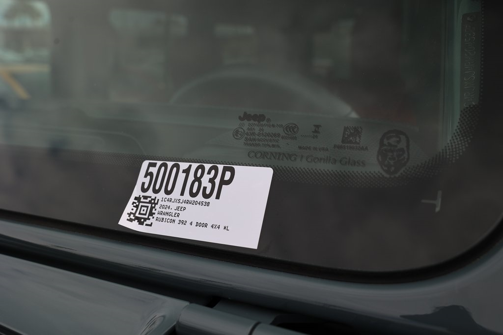 Wrangler Rubicon 392, 4D Sport Utility, SRT HEMI 6.4L V8 MDS, 8-Speed Automatic, 4WD, 9 Speakers, Alloy wheels, Compass, Convertible HardTop, Front dual zone A/C, Low tire pressure warning, Nappa Leather Seats (DISC), Navigation System, Overhead airbag, Radio: Uconnect 5 Nav w/12.3" Display, Remote keyless entry.Clean CARFAX.CARFAX One-Owner.