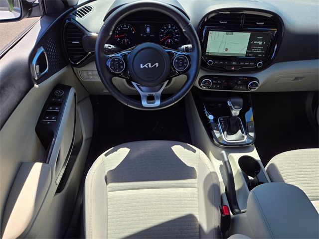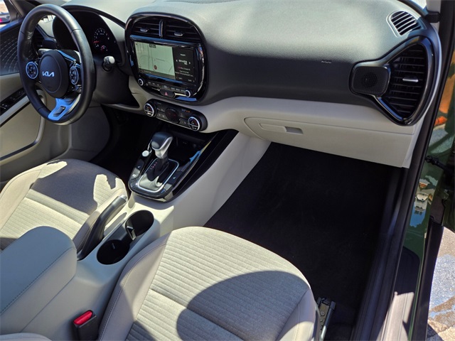 Priced below KBB Fair Purchase Price!28/33 City/Highway MPGUndercover Green 2022 Kia Soul EX FWD CVT 2.0L I4 DOHCIf you don't drive here, you can't save here!Price may not include recon fee. 17" x 6.5" Alloy Wheels, 4-Wheel Disc Brakes, 6 Speakers, ABS brakes, Air Conditioning, Alloy wheels, AM/FM radio: SiriusXM, Apple CarPlay & Android Auto, Automatic temperature control, Brake assist, Bumpers: body-color, Carpeted Floor Mats, Delay-off headlights, Driver door bin, Driver vanity mirror, Dual front impact airbags, Dual front side impact airbags, Electronic Stability Control, Emergency communication system: UVO Link, Exterior Parking Camera Rear, Front anti-roll bar, Front Bucket Seats, Front Center Armrest, Front dual zone A/C, Front fog lights, Front reading lights, Front wheel independent suspension, Fully automatic headlights, Heated door mirrors, Heated Front Bucket Seats, Heated front seats, Illuminated entry, Leather Shift Knob, Leather steering wheel, Low tire pressure warning, Navigation System, Occupant sensing airbag, Outside temperature display, Overhead airbag, Overhead console, Panic alarm, Passenger door bin, Passenger vanity mirror, Power door mirrors, Power driver seat, Power moonroof, Power steering, Power windows, Premium Cloth Seat Trim, Radio: AM/FM/MP3 Audio System, Rear seat center armrest, Rear window defroster, Rear window wiper, Remote keyless entry, Speed control, Speed-sensing steering, Split folding rear seat, Steering wheel mounted audio controls, Tachometer, Telescoping steering wheel, Tilt steering wheel, Traction control, Trip computer, and Variably intermittent wipers.