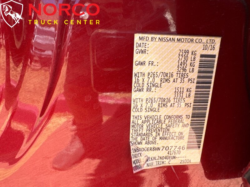 INSTALLED FEATURES: Front air conditioning, Front air conditioning zones: single, Airbag deactivation: occupant sensing passenger, Front airbags: dual, Side airbags: front, Side curtain airbags: front / rear, Antenna type: mast, Auxiliary audio input: Bluetooth / USB / iPod/iPhone / jack, In-Dash CD: MP3 Playback / single disc, Radio: AM/FM, Radio data system, Speed sensitive volume control, Total speakers: 6, ABS: 4-wheel, Electronic brakeforce distribution, Front brake diameter: 11.7, Front brake type: ventilated disc, Front brake width: 1.1, Power brakes, Rear brake diameter: 11.3, Rear brake type: ventilated disc, Rear brake width: 0.7, Floor material: carpet, Interior accents: metallic-tone, Shift knob trim: urethane, Steering wheel trim: urethane, Assist handle: front, Center console: front console with armrest and storage, Cruise control, Cupholders: front / rear, Overhead console: front, Power outlet(s): two 12V, Power steering: variable/speed-proportional, Reading lights: front, Rearview mirror: manual day/night, Steering wheel: tilt, Steering wheel mounted controls: audio / cruise control / phone, Storage: door pockets / front seatback / sunglasses holder / under rear seats, Vanity mirrors: dual, Axle ratio: 3.54, Alternator: 130 amps, Battery saver, Door handle color: black, Front bumper color: black, Grille color: chrome, Mirror color: black, Pickup bed light, Rear bumper color: chrome, Rear spoiler: tail-gate, Rear spoiler color: black, Tailgate: removable, Window trim: black, Infotainment screen size: 5 in., Clock, Digital odometer, Gauge: tachometer, Trip odometer, Warnings and reminders: low fuel level / low oil level, Headlights: auto delay off / halogen, Side mirror adjustments: manual / manual folding, Active head restraints: dual front, Child safety door locks, Child seat anchors: LATCH system, Crumple zones: front, Emergency locking retractors: front / rear, Front seatbelts: 3-point, Rear seatbelts: 3-point, Seatbelt force limiters: front, Seatbelt pretensioners: front, Seatbelt warning sensor: front, Driver seat manual adjustments: reclining / 4, Front headrests: adjustable / 2, Front seat type: bucket, Passenger seat manual adjustments: reclining / 4, Rear headrests: adjustable / 2, Rear seat folding: folds up / split, Rear seat type: 60-40 split bench, Upholstery: cloth, Stability control, Traction control, Steering ratio: 20.4, Turns lock-to-lock: 3.6, Front shock type: gas, Front spring type: coil, Front stabilizer bar: diameter 34 mm, Front struts, Front suspension classification: independent, Front suspension type: double wishbone, Rear shock type: gas, Rear spring type: leaf, Rear suspension classification: solid live axle, Rear suspension type: multi-leaf, Electronic messaging assistance: voice operated / with read function, Hands-free phone call integration: voice operated, Wireless data link: Bluetooth, Spare tire mount location: underbody, Spare tire size: full-size, Spare wheel type: steel, Tire Pressure Monitoring System, Tire type: all season, Wheels: steel, Pickup bed cargo management: tie-down anchors, Front wipers: variable intermittent, Rear privacy glass, Window defogger: rear