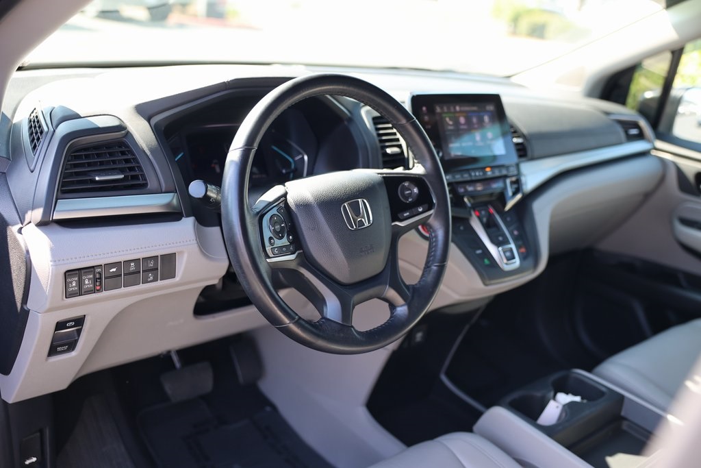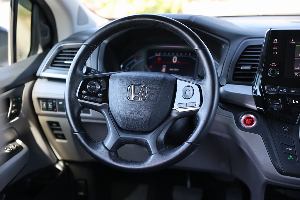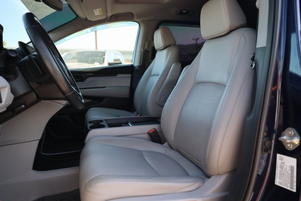 Priced below KBB Fair Purchase Price!NEW FILTERS, Odyssey EX-L AUTO, 4D Passenger Van, 3.5L V6 SOHC i-VTEC 24V, 9-Speed Automatic, FWD, 3rd row seats: split-bench, A/V remote: CabinControl, ABS brakes, Alloy wheels, Apple CarPlay/Android Auto, Blind Spot Information (BSI) System warning, Bumpers: body-color, Electronic Stability Control, Exterior Parking Camera Rear, Forward collision: Collision Mitigation Braking System (CMBS) + FCW mitigation, Front dual zone A/C, Front fog lights, Heated door mirrors, Heated Front Bucket Seats, Heated front seats, Illuminated entry, Knee airbag, Lane departure: Lane Keeping Assist System (LKAS) active, Leather Seat Trim, Low tire pressure warning, Power door mirrors, Power Liftgate, Power moonroof, Radio: 160-Watt AM/FM/HD/SiriusXM Audio System, Remote keyless entry, Spoiler, Traction control, Turn signal indicator mirrors.
