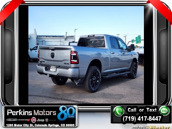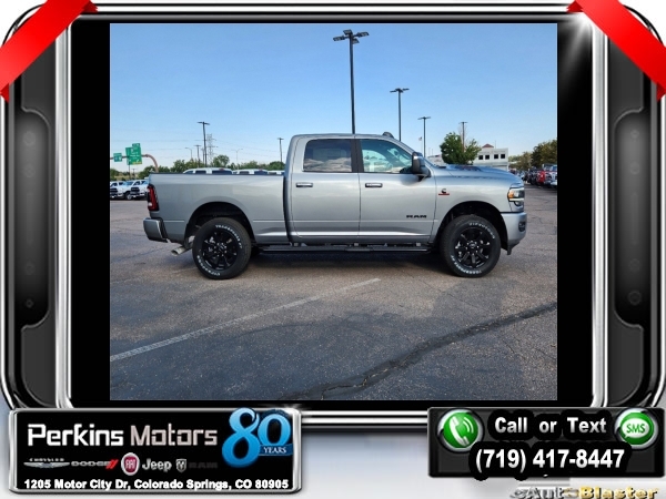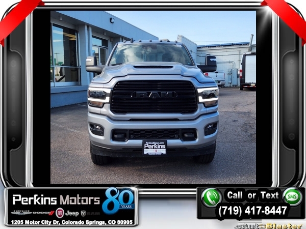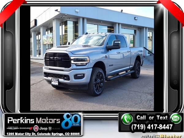 Factory MSRP: $93,305 $11,500 off MSRP! Billet Silver Metallic Clearcoat 2024 Ram 3500 Laramie 4WD 6-Speed Automatic I6<br><br>Check us out at www.perkinsmotors.com to see our specials! Since opening our doors in 1944, we’ve been proud to serve Colorado Springs, CO, and the surrounding areas of Pueblo, Castle Rock and Denver, CO. Throughout this time of being family owned for 80 years, we’ve maintained a firm commitment to our customers: to offer a wide selection of New Chrysler, Dodge, Fiat, Jeep, and Ram vehicles and quality pre-owned vehicles, and provide a quick, no-hassle car-buying process that ensures everyone drives off the lot satisfied with their purchase.<br><br>Bed Utility Group (LED Bed Lighting and MOPAR Spray In Bedliner), Laramie Level 1 Equipment Group (12 Touchscreen Display, 4G LTE Wi-Fi Hot Spot, Alexa Built-In, Apple CarPlay, Auto Adjust In Reverse Exterior Mirrors, Auto Dimming Exterior Passenger Mirror, Auto Power-Folding Mirrors, Auto-Dimming Exterior Mirrors, Blind Spot & Cross Path Detection, Center Hub, Chrome Exterior Mirrors, Connected Travel & Traffic Services, Connectivity - US/Canada, Disassociated Touchscreen Display, Exterior Mirrors Courtesy Lamps, Exterior Mirrors w/Heating Element, Exterior Mirrors w/Memory, Exterior Mirrors w/Supplemental Signals, For Details Visit DriveUconnect.com, For More Info, Call 800-643-2112, Forward & Reverse Utility Lights, Global Telematics Box Module (TBM), Google Android Auto, GPS Antenna Input, GPS Navigation, HD Radio, Integrated Voice Command w/Bluetooth, Mirror Running Lights, Off-Road Information Pages, Power Adjust Mirrors, Power Heat Fold Memory Telescopic Mirrors, Power-Adjustable Convex Aux Mirrors, Radio: Uconnect 5 Nav w/12.0 Display, Rain Sensitive Windshield Wipers, Rear Power Sliding Window, Remote Tailgate Release, Selectable Tire Fill Alert, SiriusXM Radio Service, SiriusXM w/360L, and Trailer Tow Pages), Night Edition (Black Exterior Truck Badging, Black Headlamp Bezels, Black RAM Head Tailgate Badge, Black Tail Lamp Bezels, Black Wheel Center Hub, Sport Performance Hood, and Wheels: 20 x 8.0 Black Painted Aluminum), Protection Group, Quick Order Package 21H Laramie, Safety Group (Adaptive Steering System and Lane Keep Assist), Snow Chief Group (Auxiliary Switches Prep, Clearance Lamps, Dash Pass Thru Wire Circuits, and I/P Mounted Auxiliary Switches), Towing Technology Group (CTR Stop Lamp w/Cargo View Camera, Surround View Camera System, and Trailer Reverse Guidance), 10 Speakers, 115V Auxiliary Rear Power Outlet, 2 Way Rear Headrest Seat, 220 Amp Alternator, 3.73 Axle Ratio, 4 Way Front Headrests, 4-Wheel Disc Brakes, 5th Wheel/Gooseneck Towing Prep Group, 8.4 Touchscreen Display, ABS brakes, Active Noise Control System, Air Conditioning, Alloy wheels, AM/FM radio: SiriusXM with 360L, Apple CarPlay/Android Auto, Auto Level Rear Air Suspension, Auto-dimming Rear-View mirror, Automatic temperature control, Brake assist, Bumpers: body-color, Compass, Cruise Control, Delay-off headlights, Driver door bin, Driver vanity mirror, Dual Alternators Rated At 440 Amps, Dual front impact airbags, Dual front side impact airbags, Electronic Stability Control, Electronically Controlled Throttle, Folding Flat Load Floor Storage, Front anti-roll bar, Front Center Armrest w/Storage, Front dual zone A/C, Front License Plate Bracket, Front reading lights, Front Seat Back Map Pockets, Fully automatic headlights, Garage door transmitter, Heated door mirrors, Heated Front Seats, Heated front seats, Heated Steering Wheel, Heated steering wheel, High Back Seats, Illuminated entry, Integrated Center Stack Radio, Leather steering wheel, Leather Trim 40/20/40 Bench Seat, Low tire pressure warning, Manufacturer's Statement of Origin, MOPAR Front & Rear Rubber Floor Mats, Occupant sensing a Sale price includes all manufacture's incentives and dealer discounts. Sale price not available on lease or compatible with special APR. $1000 - 2024 Bonus Cash . Exp. 0