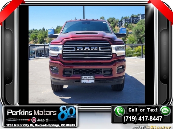 Factory MSRP: $87,115 $11,000 off MSRP! Delmonico Red Pearlcoat 2024 Ram 3500 Laramie 4WD 6-Speed Automatic I6<br><br>Check us out at www.perkinsmotors.com to see our specials! Since opening our doors in 1944, we’ve been proud to serve Colorado Springs, CO, and the surrounding areas of Pueblo, Castle Rock and Denver, CO. Throughout this time of being family owned for 80 years, we’ve maintained a firm commitment to our customers: to offer a wide selection of New Chrysler, Dodge, Fiat, Jeep, and Ram vehicles and quality pre-owned vehicles, and provide a quick, no-hassle car-buying process that ensures everyone drives off the lot satisfied with their purchase.<br><br>Bed Utility Group (MOPAR Deployable Bed Step and MOPAR Spray In Bedliner), Laramie Level 1 Equipment Group (18 x 8 Polished Aluminum Wheels, 2nd Row In Floor Storage Bins, 4G LTE Wi-Fi Hot Spot, Alexa Built-In, Apple CarPlay, Auto High Beam Headlamp Control, Blind Spot & Cross Path Detection, Center Hub, Connected Travel & Traffic Services, Connectivity - US/Canada, Disassociated Touchscreen Display, Exterior Mirrors Courtesy Lamps, Exterior Mirrors w/Heating Element, Exterior Mirrors w/Supplemental Signals, Foam Bottle Insert (Door Trim Panel), For Details Visit DriveUconnect.com, For More Info, Call 800-643-2112, Front LED Fog Lamps, Global Telematics Box Module (TBM), Google Android Auto, GPS Antenna Input, GPS Navigation, HD Radio, Integrated Voice Command w/Bluetooth, LED Reflector Headlamps, LED Tail Lamps, Off-Road Information Pages, ParkSense Front/Rear Park Assist System, Power Adjust Mirrors, Power Adjustable Pedals w/Memory, Power Telescoping Mirrors, Power-Adjustable Convex Aux Mirrors, Radio: Uconnect 5 Nav w/12.0 Display, Rear Window Defroster, Selectable Tire Fill Alert, SiriusXM Radio Service, SiriusXM w/360L, and Trailer Tow Pages), Protection Group, Quick Order Package 2HH Laramie, Safety Group (Adaptive Steering System and Lane Keep Assist), Snow Chief Group (Auxiliary Switches Prep, Clearance Lamps, and I/P Mounted Auxiliary Switches), Sport Appearance Package (20 x 8 Polished Aluminum Wheels, Sport Decal, and Sport Performance Hood), 10 Speakers, 115V Auxiliary Rear Power Outlet, 2 Way Rear Headrest Seat, 220 Amp Alternator, 3.73 Axle Ratio, 4 Way Front Headrests, 4-Wheel Disc Brakes, 5th Wheel/Gooseneck Towing Prep Group, 8.4 Touchscreen Display, ABS brakes, Active Noise Control System, Air Conditioning, Alloy wheels, AM/FM radio: SiriusXM with 360L, Apple CarPlay/Android Auto, Auto Level Rear Air Suspension, Auto-dimming Rear-View mirror, Automatic temperature control, Brake assist, Bumpers: body-color, Compass, Cruise Control, CTR Stop Lamp w/Cargo View Camera, Delay-off headlights, Driver door bin, Driver vanity mirror, Dual Alternators Rated At 440 Amps, Dual front impact airbags, Dual front side impact airbags, Electronic Stability Control, Electronically Controlled Throttle, Folding Flat Load Floor Storage, Front anti-roll bar, Front Center Armrest w/Storage, Front dual zone A/C, Front License Plate Bracket, Front reading lights, Front Seat Back Map Pockets, Fully automatic headlights, Garage door transmitter, Heated door mirrors, Heated Front Seats, Heated front seats, Heated Steering Wheel, Heated steering wheel, High Back Seats, Illuminated entry, Integrated Center Stack Radio, Leather steering wheel, Leather Trim 40/20/40 Bench Seat, Low tire pressure warning, Manufacturer's Statement of Origin, MOPAR Front & Rear Rubber Floor Mats, Occupant sensing airbag, Outside temperature display, Overhead airbag, Overhead console, Panic alarm, ParkView Rear Back-Up Camera, Passenger door bin, Passenger vanity mirror, Power 8-Way Adjustable Passenger Seat, Power Adjust 8-Way Driver Seat, Power door mirrors, Power driver seat, Power passenger seat, Power steering, Pow Sale price includes all manufacture's incentives and dealer discounts. Sale price not available on lease or compatible with special APR. $1000 - 2024 Bonus Cash . Exp. 0
