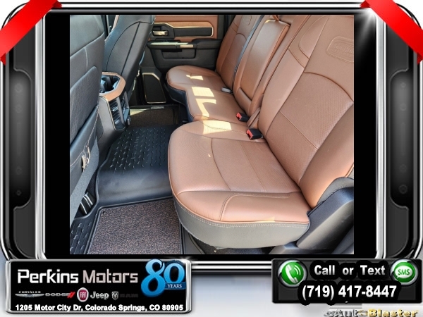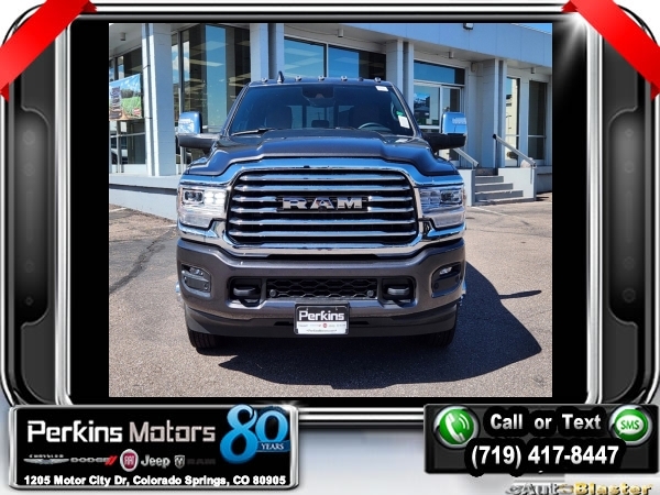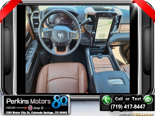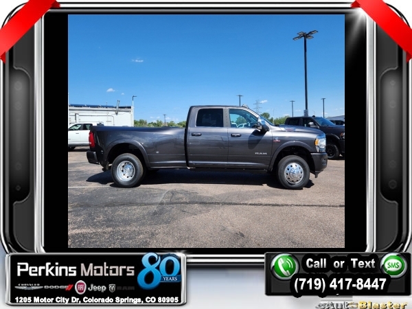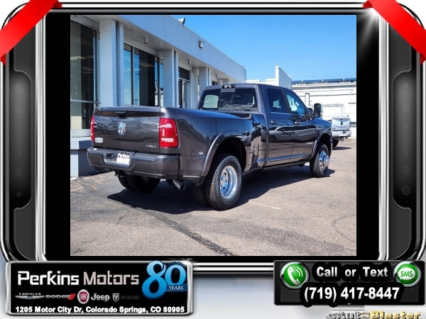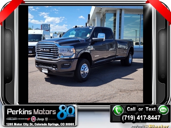 Factory MSRP: $99,965 $13,500 off MSRP! Granite Crystal Metallic Clearcoat 2024 Ram 3500 Laramie Longhorn 4WD 6-Speed Automatic I6<br><br>Check us out at www.perkinsmotors.com to see our specials! Since opening our doors in 1944, we’ve been proud to serve Colorado Springs, CO, and the surrounding areas of Pueblo, Castle Rock and Denver, CO. Throughout this time of being family owned for 80 years, we’ve maintained a firm commitment to our customers: to offer a wide selection of New Chrysler, Dodge, Fiat, Jeep, and Ram vehicles and quality pre-owned vehicles, and provide a quick, no-hassle car-buying process that ensures everyone drives off the lot satisfied with their purchase.<br><br>Cold Weather Group (Engine Block Heater), Heavy Duty Snow Plow Prep Group, Longhorn Level 1 Equipment Group (4G LTE Wi-Fi Hot Spot, Alexa Built-In, Apple CarPlay, Blind Spot & Cross Path Detection, Connected Travel & Traffic Services, Connectivity - US/Canada, Disassociated Touchscreen Display, For Details Visit DriveUconnect.com, For More Info, Call 800-643-2112, Global Telematics Box Module (TBM), Google Android Auto, GPS Antenna Input, GPS Navigation, HD Radio, Integrated Voice Command w/Bluetooth, LED Bed Lighting, Off-Road Information Pages, Radio: Uconnect 5 Nav w/12.0 Display, Selectable Tire Fill Alert, SiriusXM Radio Service, SiriusXM w/360L, and Trailer Tow Pages), Protection Group, Quick Order Package 21K Longhorn, Safety Group (Adaptive Steering System), Towing Technology Group (CTR Stop Lamp w/Cargo View Camera), 10 Speakers, 115V Auxiliary Rear Power Outlet, 2 Way Rear Headrest Seat, 220 Amp Alternator, 3.73 Axle Ratio, 4 Way Front Headrests, 4-Wheel Disc Brakes, 4.10 Axle Ratio, 50 Gallon Fuel Tank, 5th Wheel/Gooseneck Towing Prep Group, 6000# Front Axle w/Hub Ext, ABS brakes, Active Noise Control System, Adjustable pedals, Air Conditioning, Alloy wheels, AM/FM radio: SiriusXM with 360L, Apple CarPlay/Android Auto, Audio memory, Auto High-beam Headlights, Auto Level Rear Air Suspension, Auto-dimming door mirrors, Auto-dimming Rear-View mirror, Automatic temperature control, Brake assist, Bucket Seats, Bumpers: body-color, Center Hub, Clearance Lamps, Compass, Cruise Control, Delay-off headlights, Driver door bin, Driver vanity mirror, Dual front impact airbags, Dual front side impact airbags, Dual Rear Wheels, Electronic Stability Control, Electronically Controlled Throttle, Folding Flat Load Floor Storage, Front anti-roll bar, Front Bucket Seats, Front Center Armrest w/Storage, Front dual zone A/C, Front fog lights, Front License Plate Bracket, Front reading lights, Front Seat Back Map Pockets, Full Length Premium Upgraded Floor Console, Fully automatic headlights, Garage door transmitter, Genuine wood console insert, Genuine wood dashboard insert, Genuine wood door panel insert, Heated door mirrors, Heated Front Seats, Heated front seats, Heated rear seats, Heated Second Row Seats, Heated Steering Wheel, Heated steering wheel, High Back Seats, I/P Mounted Auxiliary Switches, Illuminated entry, Leather steering wheel, Low tire pressure warning, Manufacturer's Statement of Origin, Memory seat, MOPAR Deployable Bed Step, Occupant sensing airbag, Outside temperature display, Overhead airbag, Overhead console, Panic alarm, ParkView Rear Back-Up Camera, Passenger door bin, Passenger vanity mirror, Pedal memory, Power 8-Way Adjustable Passenger Seat, Power Adjust 8-Way Driver Seat, Power door mirrors, Power driver seat, Power passenger seat, Power steering, Power Sunroof, Power windows, Premium Filigree Leather Seats, Radio data system, Rain sensing wipers, Rear 60/40 Folding Seat, Rear reading lights, Rear seat center armrest, Rear step bumper, Rear window defroster, Remote keyless entry, Security system, Split folding rear seat, Steering wheel mounted audio co Sale price includes all manufacture's incentives and dealer discounts. Sale price not available on lease or compatible with special APR. $1000 - 2024 Bonus Cash . Exp. 1