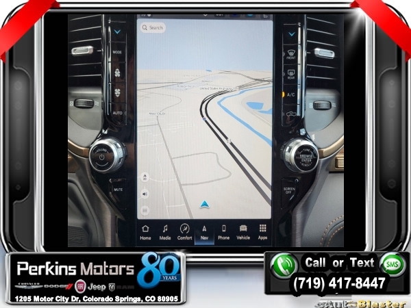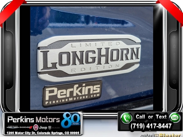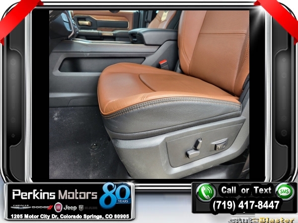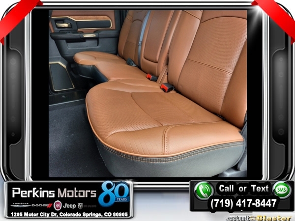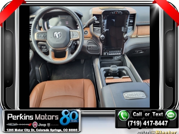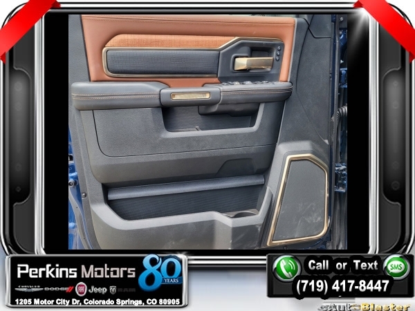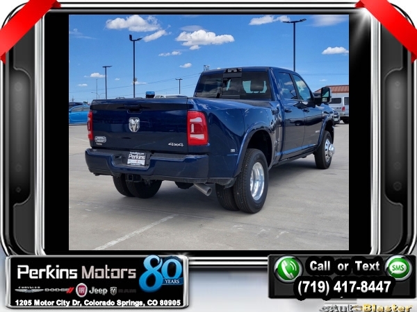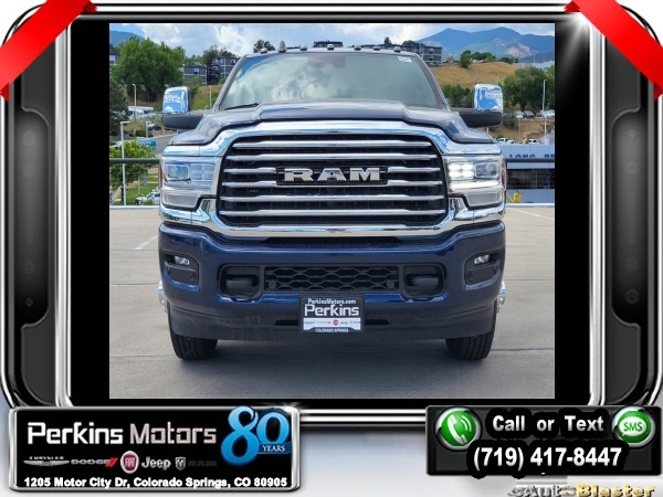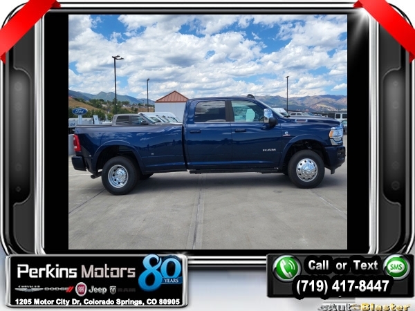 Factory MSRP: $99,915 $13,500 off MSRP! Patriot Blue Pearlcoat 2024 Ram 3500 Laramie Longhorn 4WD 6-Speed Automatic I6<br><br>Check us out at www.perkinsmotors.com to see our specials! Since opening our doors in 1944, we’ve been proud to serve Colorado Springs, CO, and the surrounding areas of Pueblo, Castle Rock and Denver, CO. Throughout this time of being family owned for 80 years, we’ve maintained a firm commitment to our customers: to offer a wide selection of New Chrysler, Dodge, Fiat, Jeep, and Ram vehicles and quality pre-owned vehicles, and provide a quick, no-hassle car-buying process that ensures everyone drives off the lot satisfied with their purchase.<br><br>Cold Weather Group (Engine Block Heater), Heavy Duty Snow Plow Prep Group, Longhorn Level 1 Equipment Group (4G LTE Wi-Fi Hot Spot, Alexa Built-In, Apple CarPlay, Blind Spot & Cross Path Detection, Connected Travel & Traffic Services, Connectivity - US/Canada, Disassociated Touchscreen Display, For Details Visit DriveUconnect.com, For More Info, Call 800-643-2112, Global Telematics Box Module (TBM), Google Android Auto, GPS Antenna Input, GPS Navigation, HD Radio, Integrated Voice Command w/Bluetooth, MOPAR Spray In Bedliner, Off-Road Information Pages, Selectable Tire Fill Alert, SiriusXM Radio Service, SiriusXM w/360L, and Trailer Tow Pages), Protection Group, Quick Order Package 21K Longhorn, Safety Group (Adaptive Steering System), Towing Technology Group (CTR Stop Lamp w/Cargo View Camera), 10 Speakers, 115V Auxiliary Rear Power Outlet, 2 Way Rear Headrest Seat, 220 Amp Alternator, 3.73 Axle Ratio, 4 Way Front Headrests, 4-Wheel Disc Brakes, 4.10 Axle Ratio, 50 Gallon Fuel Tank, 5th Wheel/Gooseneck Towing Prep Group, 6000# Front Axle w/Hub Ext, ABS brakes, Active Noise Control System, Adjustable pedals, Air Conditioning, Alloy wheels, AM/FM radio: SiriusXM with 360L, Apple CarPlay/Android Auto, Audio memory, Auto High-beam Headlights, Auto Level Rear Air Suspension, Auto-dimming door mirrors, Auto-dimming Rear-View mirror, Automatic temperature control, Brake assist, Bucket Seats, Bumpers: body-color, Center Hub, Clearance Lamps, Compass, Cruise Control, Delay-off headlights, Driver door bin, Driver vanity mirror, Dual front impact airbags, Dual front side impact airbags, Dual Rear Wheels, Electronic Stability Control, Electronically Controlled Throttle, Folding Flat Load Floor Storage, Front anti-roll bar, Front Bucket Seats, Front Center Armrest w/Storage, Front dual zone A/C, Front fog lights, Front License Plate Bracket, Front reading lights, Front Seat Back Map Pockets, Full Length Premium Upgraded Floor Console, Fully automatic headlights, Garage door transmitter, Genuine wood console insert, Genuine wood dashboard insert, Genuine wood door panel insert, Heated door mirrors, Heated Front Seats, Heated front seats, Heated rear seats, Heated Second Row Seats, Heated Steering Wheel, Heated steering wheel, High Back Seats, I/P Mounted Auxiliary Switches, Illuminated entry, Leather steering wheel, Low tire pressure warning, Manufacturer's Statement of Origin, Memory seat, MOPAR Deployable Bed Step, Occupant sensing airbag, Outside temperature display, Overhead airbag, Overhead console, Panic alarm, ParkView Rear Back-Up Camera, Passenger door bin, Passenger vanity mirror, Pedal memory, Power 8-Way Adjustable Passenger Seat, Power Adjust 8-Way Driver Seat, Power door mirrors, Power driver seat, Power passenger seat, Power steering, Power Sunroof, Power windows, Premium Filigree Leather Seats, Radio data system, Rain sensing wipers, Rear 60/40 Folding Seat, Rear reading lights, Rear seat center armrest, Rear step bumper, Rear window defroster, Remote keyless entry, Security system, Split folding rear seat, Steering wheel mounted audio controls, Tachometer, Tilt steering wheel, Tip Sale price includes all manufacture's incentives and dealer discounts. Sale price not available on lease or compatible with special APR. $1000 - 2024 Bonus Cash . Exp. 1